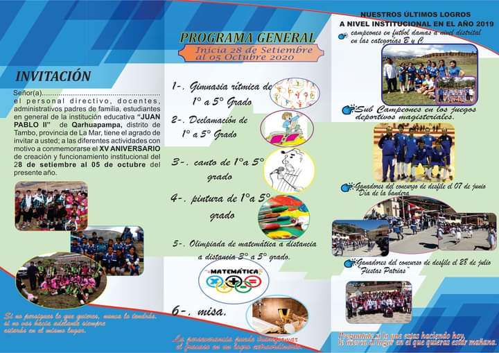 05/10 - XV #AniversarioInstitucional Institución Educativa Pública "Juan Pablo II" - Qarhuapampa/Tambo.