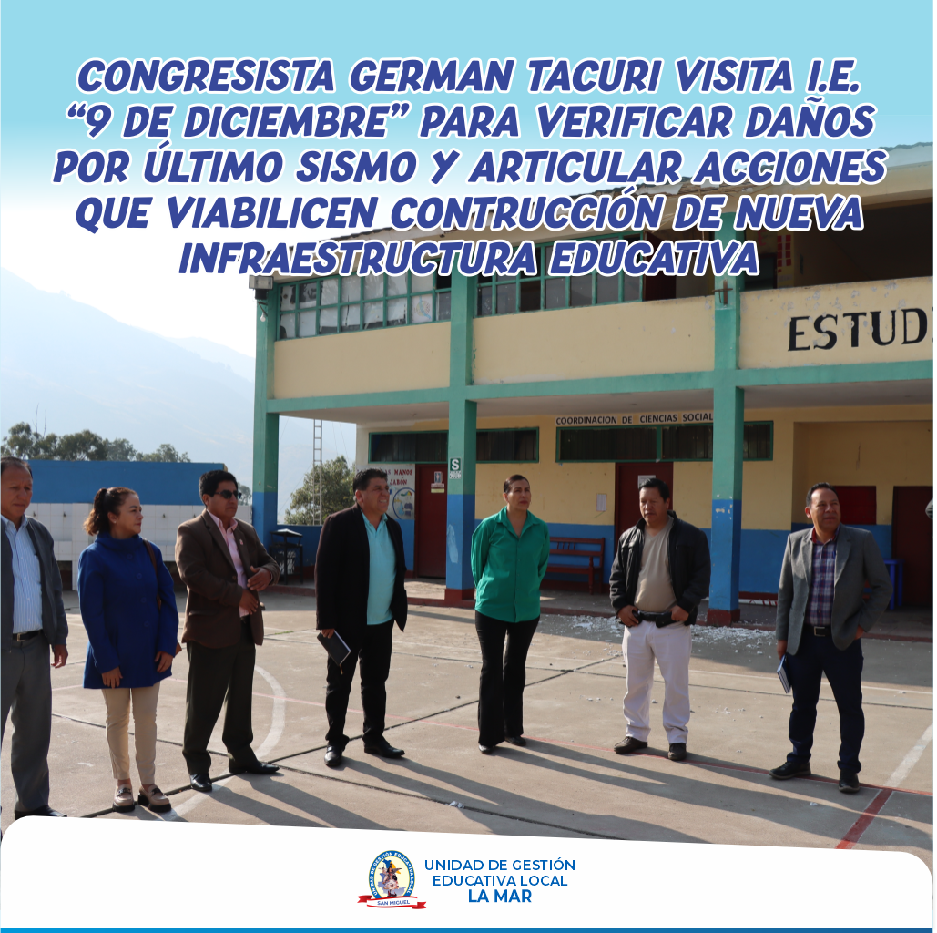 ✅CONGRESISTA GERMAN TACURI VISITA I.E. “9 DE DICIEMBRE” PARA VERIFICAR DAÑOS POR ÚLTIMO SISMO Y ARTICULAR ACCIONES QUE VIABILICEN CONTRUCCIÓN DE NUEVA INFRAESTRUCTURA EDUCATIVA