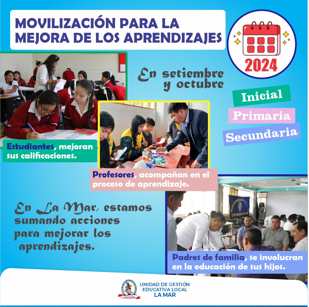 🟦(Setiembre - octubre) En la provincia de La Mar, especialistas, coordinadores, directores, docentes, estudiantes y padres de familia suman acciones para la mejorar de los aprendizajes.