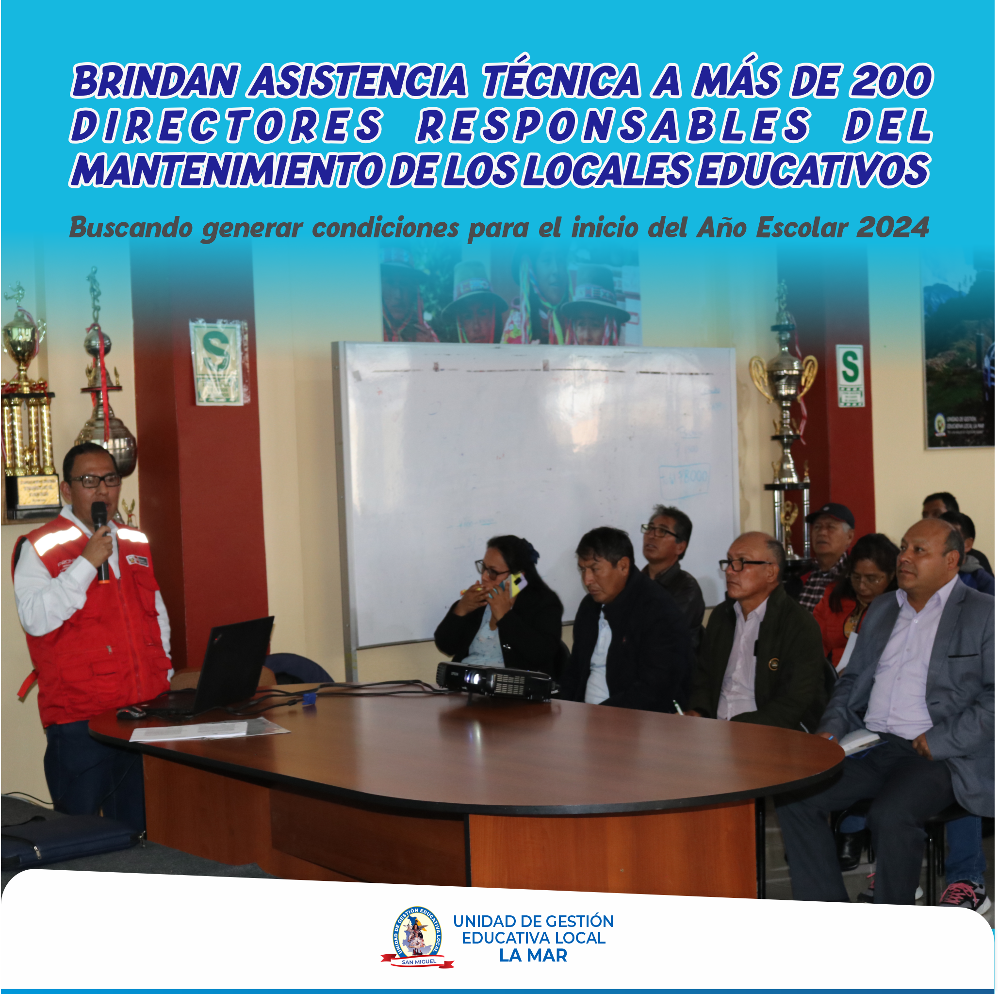 ✅La capacitación estuvo a cargo del Ing. Landau Bonilla Magallanes, representante de la Unidad Gerencial de Mantenimiento del PRONIED, quien sostuvo que el programa de Mantenimiento de Locales Escolares, afianza el uso óptimo del presupuesto de mantenimiento de las infraestructuras educativas, con la finalidad de tener escuelas seguras y adecuadas para recibir a los estudiantes en este nuevo Año Escolar.