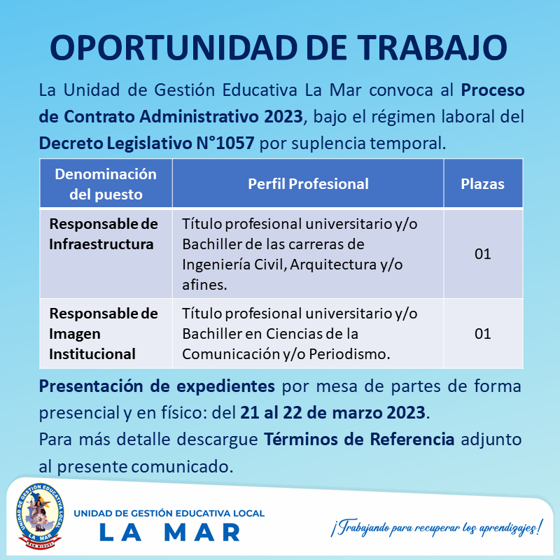 Por todo ello, a nombre del director, jefes de línea y trabajadores de la sede administrativa expresamos un fraterno saludo a las directoras, docentes, auxiliares, y personal administrativo mujeres valientes, luchadoras, y guerreras que brindan su espacio y tiempo para promover la calidad del servicio educativo en la provincia de La Mar.