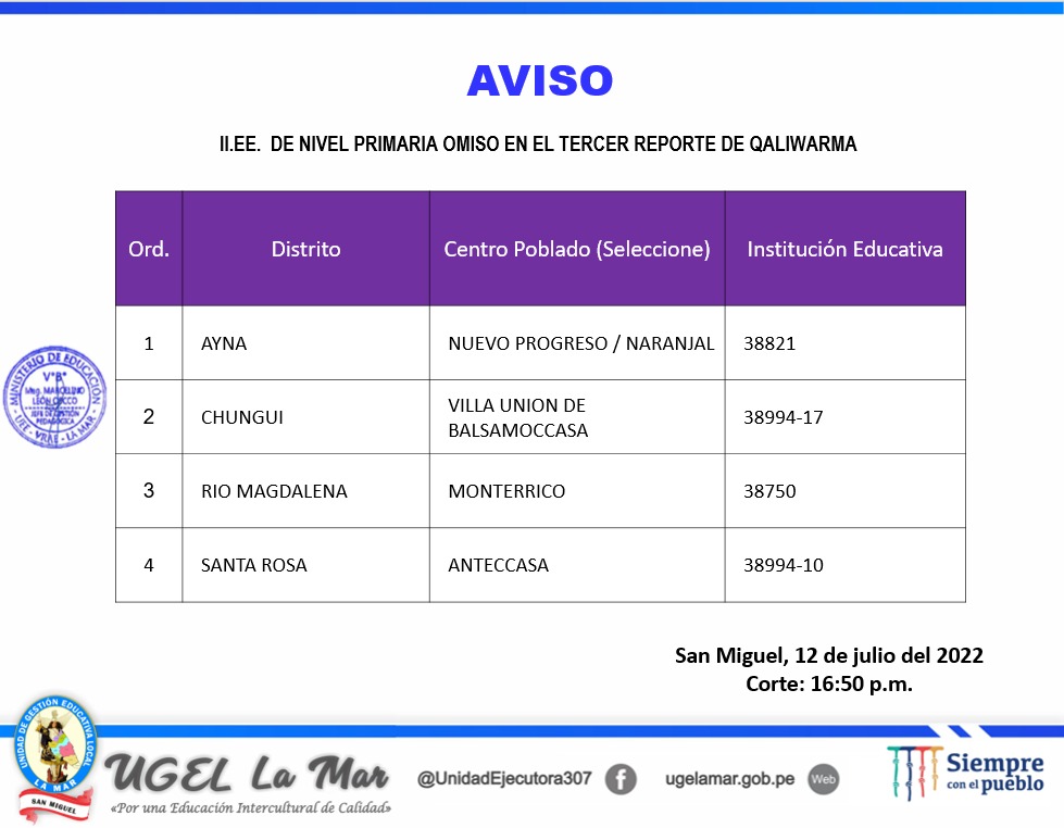 La Unidad de Gestión Educativa Local La Mar, a través de su director el Mg. Alfredo Prado Barzola, participo de la ceremonia de inauguración de los JDEP 2022, reconociendo la organización, trabajo y esfuerzo de los profesores y padres de familia para promover la práctica del deporte en los estudiantes de la zona; más aún, después de los dos años de pandemia, donde no se permitían estos espacios de esparcimiento.