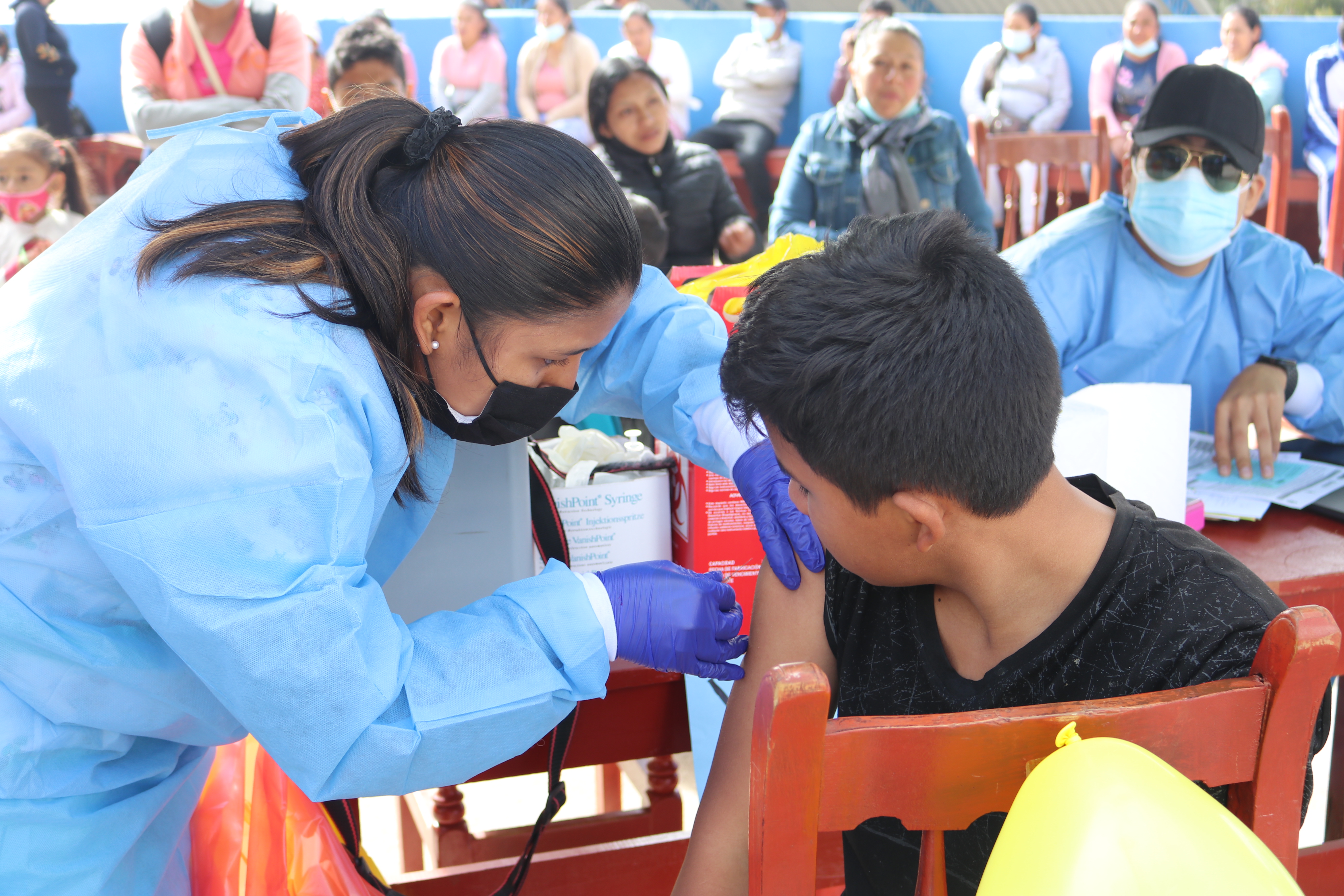 Como tal, hoy se desarrollo la campaña masiva de vacunación en los ambientes de la I.E. “09 de Diciembre” de San Miguel, donde tuvo la acogida de docentes, padres de familia y estudiantes a quienes se les inmunizo con la primera o segunda dosis para enfrentar el virus de la COVID-19.