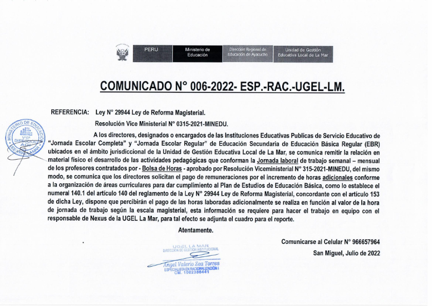 Ver Oficio Múltiple N°134-2022-UGEL-LM: