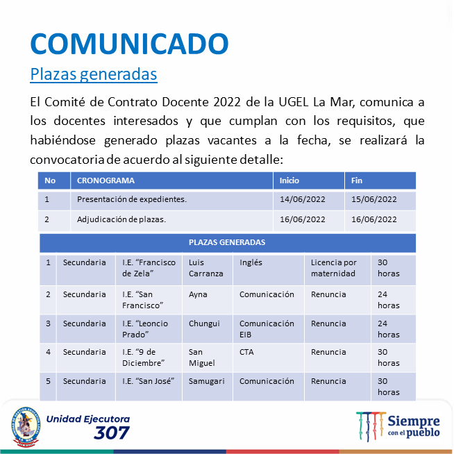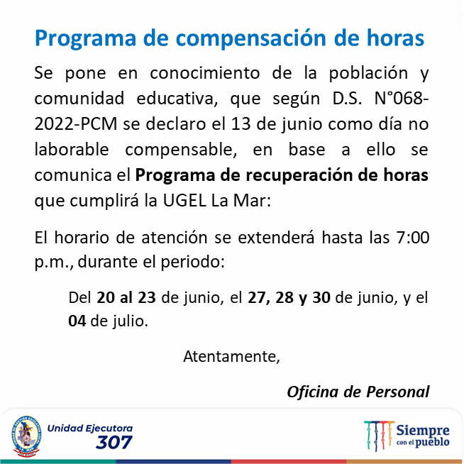 (Del 13 al 24 de junio) La Unidad de Gestión Educativa Local La Mar, a través del Área de Gestión Pedagógica viene impulsando acciones para el fortalecimiento de competencias en gestión escolar a directivos, y competencias pedagógicas en docentes, atendiendo a 58 instituciones educativas focalizadas en siete distritos de la provincia, tarea que busca mejorar los aprendizajes de estudiantes de Educación Básica Regular.
