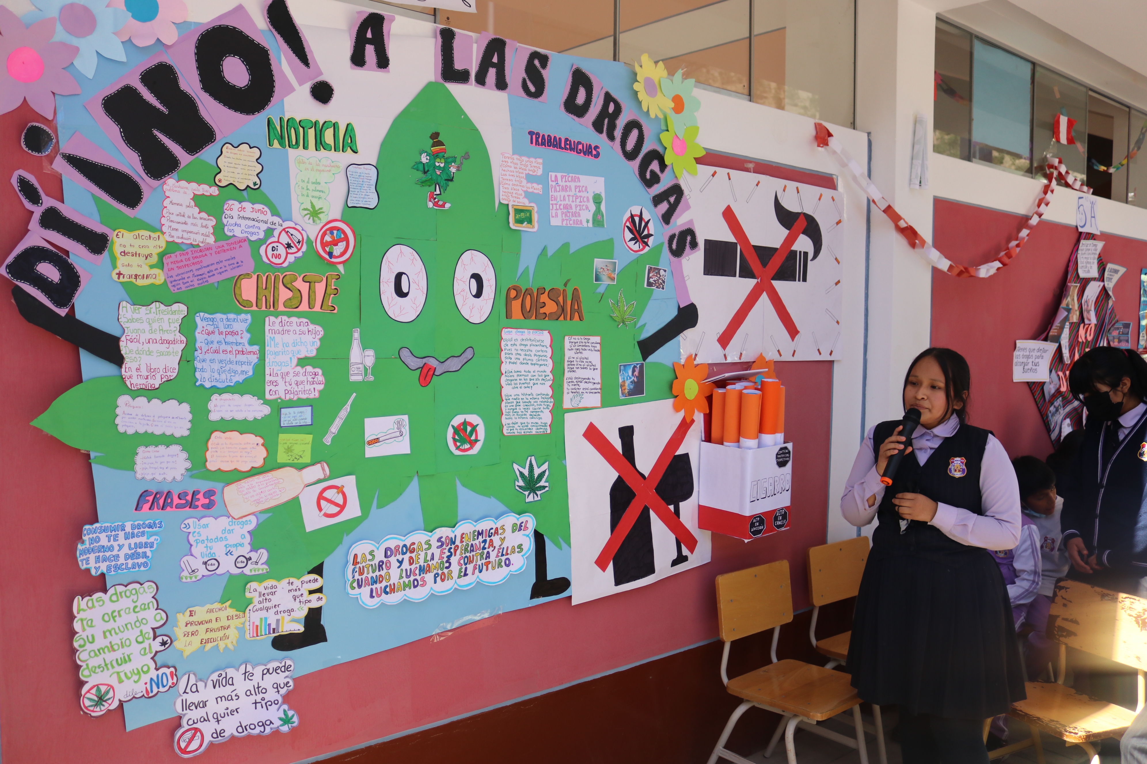 (27 de junio) Estudiantes de las instituciones educativas: “Señor de los Milagros”, “09 de Diciembre” y “Mirtha Jerí de Añaños, del distrito de San Miguel - La Mar, en coordinación con sus docentes y directivos, organizaron la Primera presentación de periódicos murales “Di ¡No! A las Drogas” en los ambientes de su colegio, para promover la cultura de prevención frente al consumo de drogas; ello en el marco de la celebración del Día Internacional de la Lucha contra el Uso Indebido y el Tráfico Ilícito de Drogas (26 de junio).
