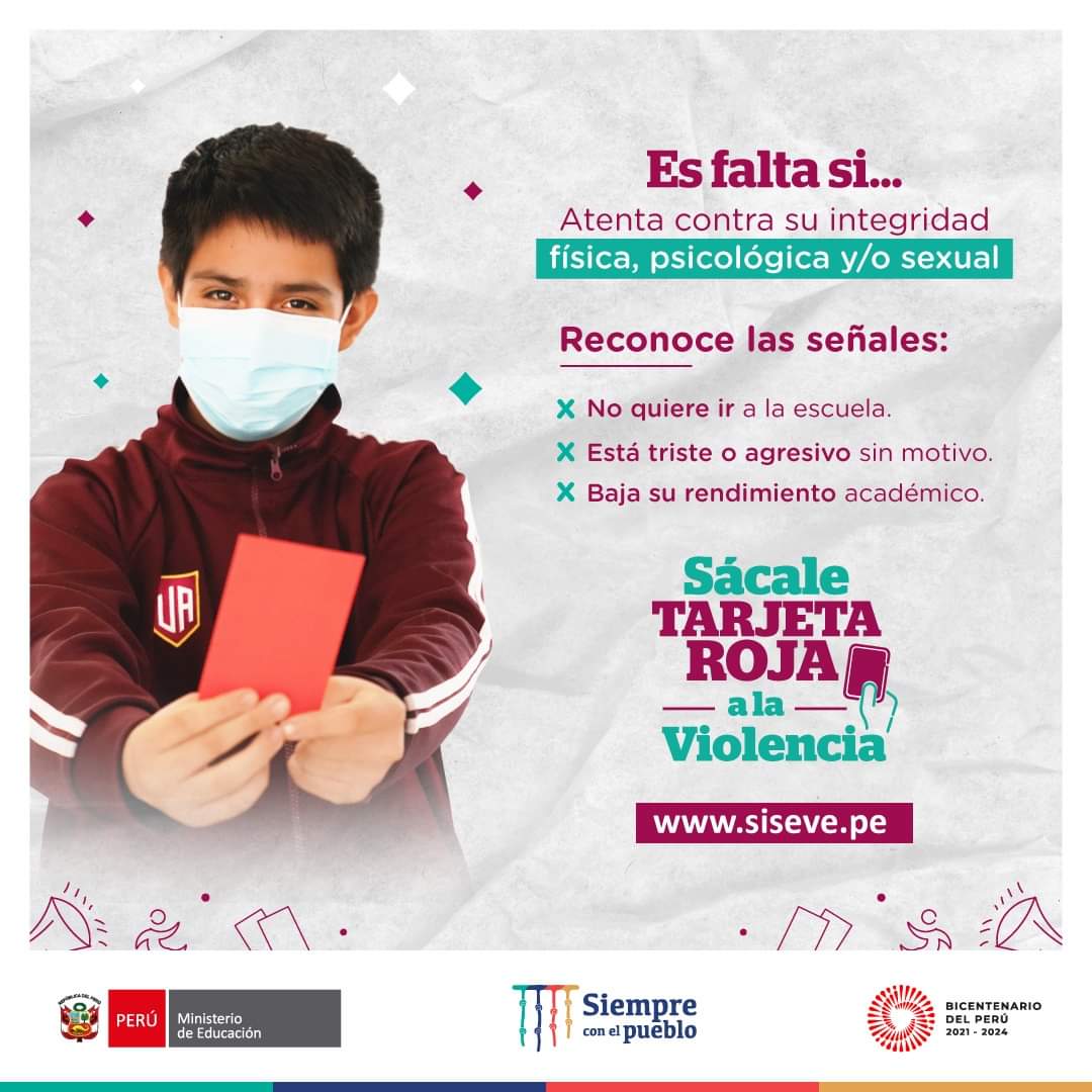 Traslademos la sensación de unidad que nos da el repechaje a una acción concreta para combatir la violencia escolar. ¡Arbitra la violencia en tu escuela y tu hogar! Habla con tu hija/o constantemente y si es víctima de un acto de violencia escolar, reporta confidencialmente en www.siseve.pe.