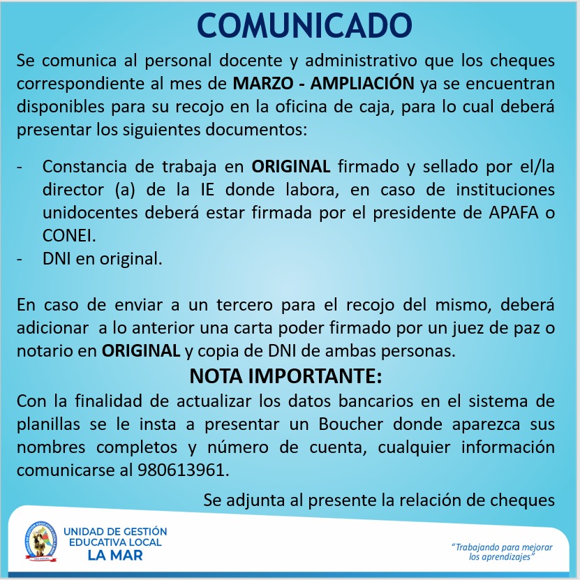 🏫 Para todas las Instituciones Educativas - UGEL LA MAR 🏫