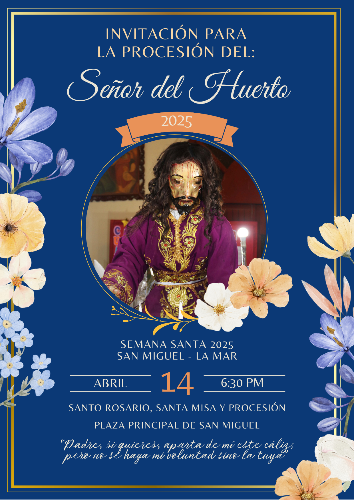 👉CORDIAL INVITACIÓN PARA PARTICIPAR DE LAS ACTIVIDADES RELIGIOSAS EN HONOR AL SEÑOR DEL HUERTO 2025 - MAYORDOMÍA UGEL LA MAR (14/04/2025 - 06:30 P.M.)