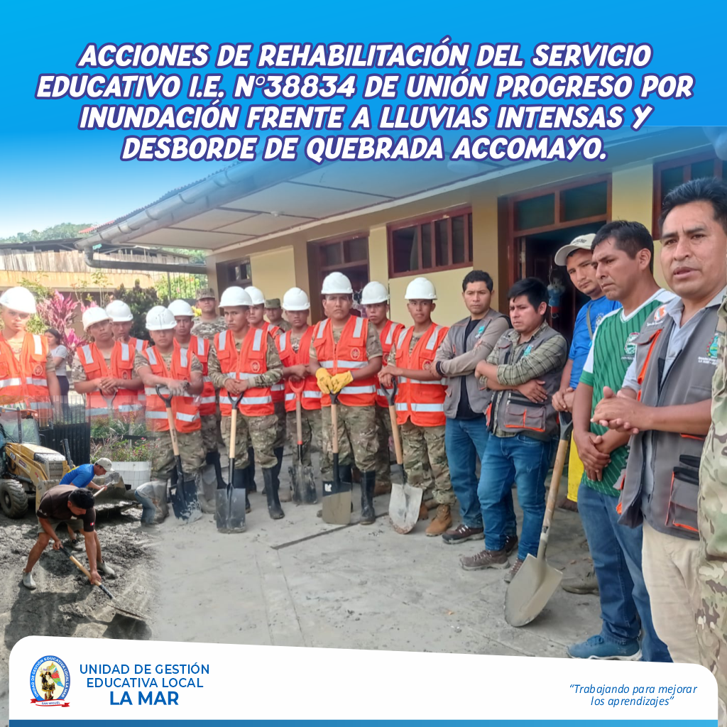 ✅EQUIPO TÉCNICO DE LA UGEL LA MAR VISITA I.E. N°38834/Mx-P DE UNIÓN PROGRESO FRENTE A INUNDACIÓN POR LLUVIAS INTENSAS Y PARTICIPA DE LAS ACCIONES DE REHABILITACIÓN DEL SERVICIO EDUCATIVO