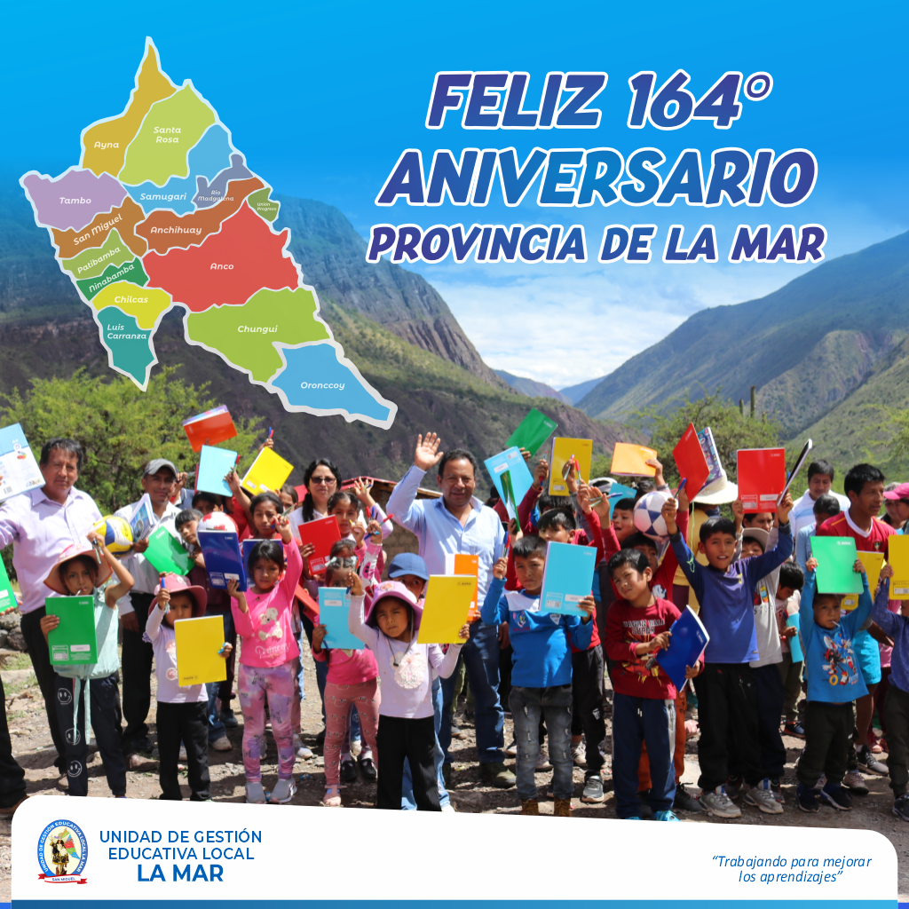 👉La familia de la UGEL La Mar, desarrolla el saludo institucional a nuestra hermosa provincia de La Mar - región Ayacucho, por sus 164° Aniversario de Creación Política, que se celebra cada 30 de marzo desde 1861.