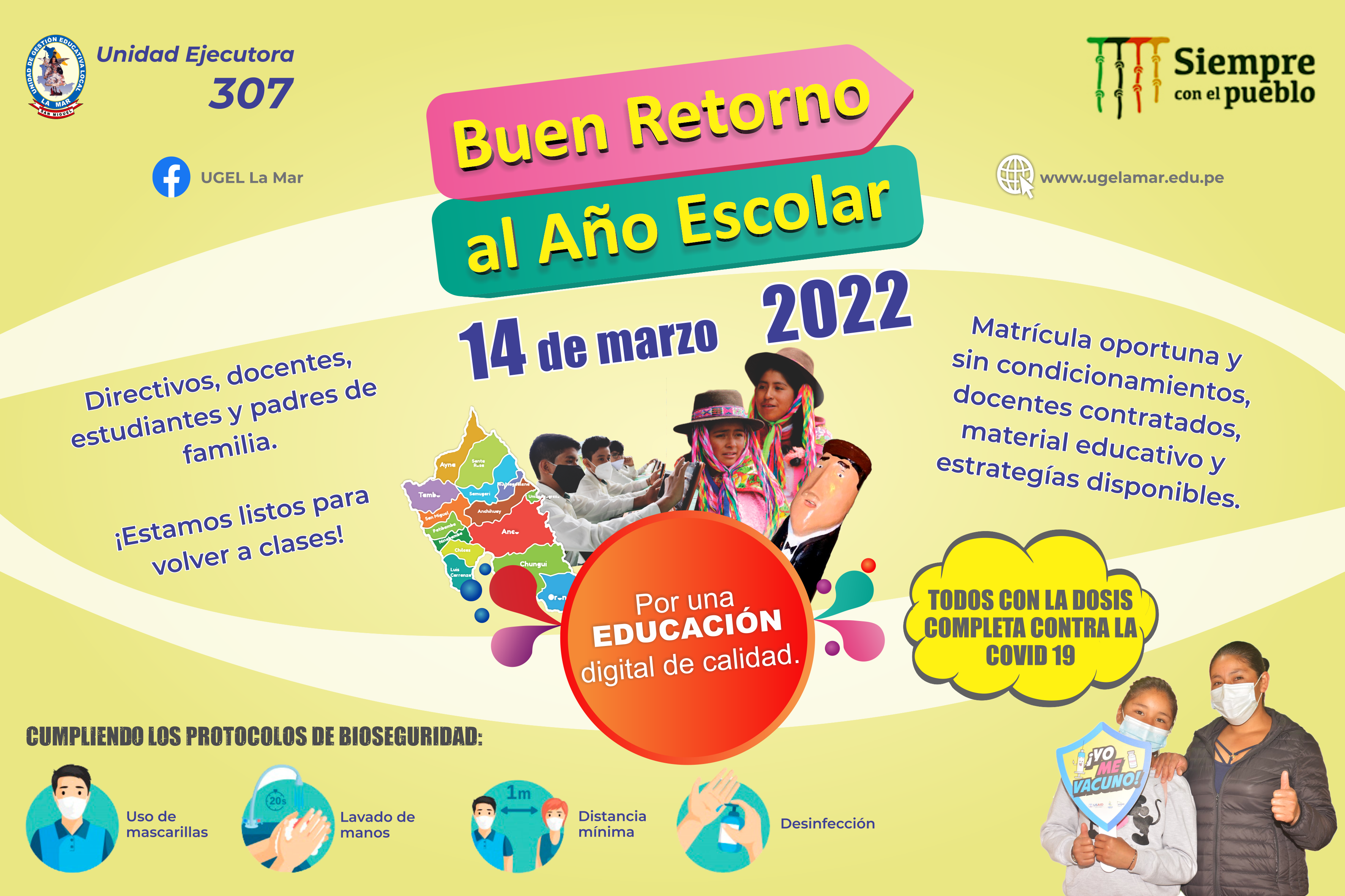 Nota: Este lunes 14 de marzo, se hará el lanzamiento del Buen Retorno al Año Escolar 2022 en simultáneo en los quince distritos de la provincia de La Mar, donde se identificará las condiciones, medidas y actividades implementadas en las instituciones educativas para el inicio de clases presenciales y/o semipresenciales.