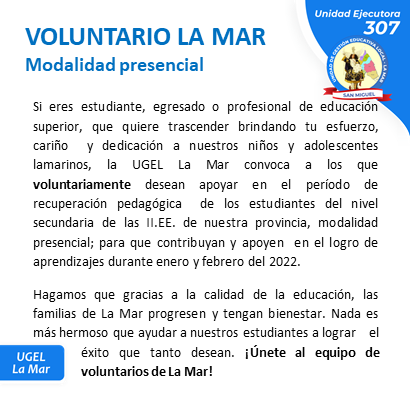 OPORTUNIDAD VALIOSA PARA SER PARTE DEL GRUPO DE VOLUNTARIOS DE LA REGION AYACUCHO, PARA APOYAR A LOS ESTUDIANTES EN EL REFUERZO ACADÉMICO DURANTE LOS MESES DE ENERO Y FEBRERO.