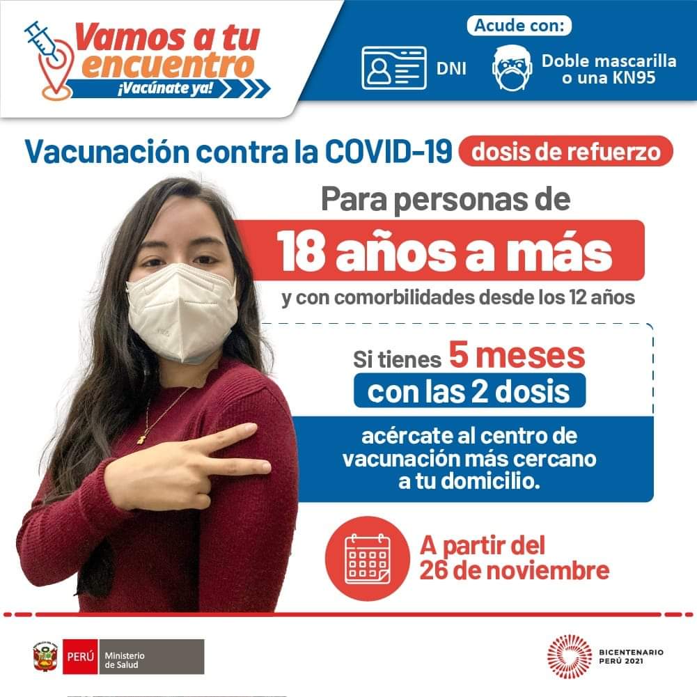 ATENCIÓN | Si tienes 18 años o más y recibiste tu segunda dosis hace más de 5 meses, desde este 26 de noviembre podrás recibir la dosis de refuerzo.