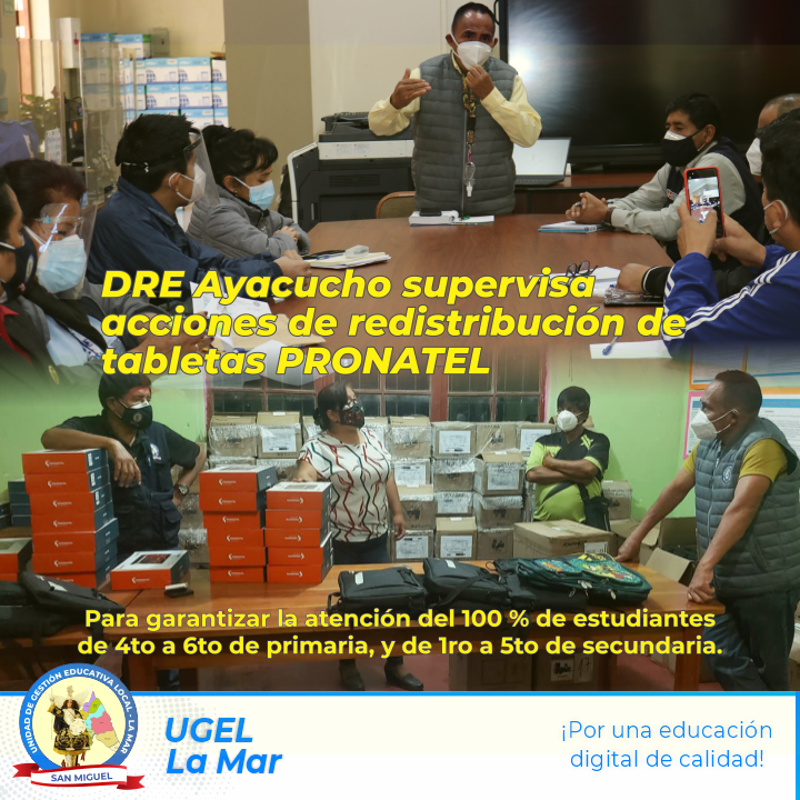 Desde tempranas horas del lunes 10 de mayo, el Director Regional de Educación de Ayacucho, Director de la UGEL La Mar, equipo de especialistas y trabajadores sostuvieron reunión, a fin de concretar acciones que garanticen la atención de estudiantes de instituciones educativas focalizadas y no focalizadas por el Programa Nacional de Telecomunicaciones- MTC.