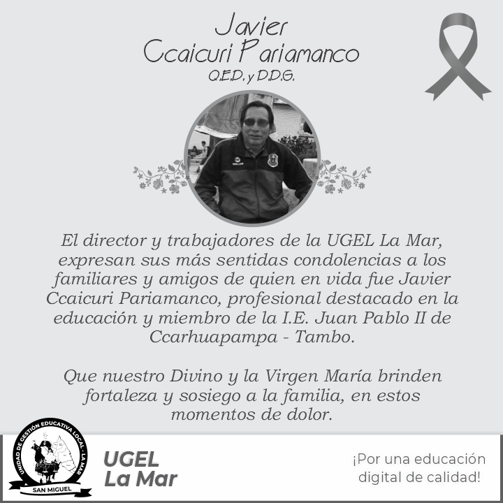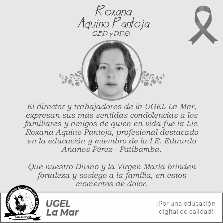 Nuestras sentidas condolencias a la familia educativa de la I.E. Eduardo Añañoz Pérez.