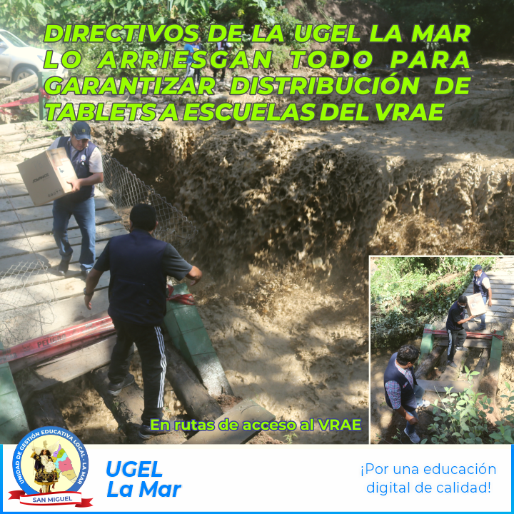 A pesar de las inclemencias del tiempo, huaycos, y el difícil acceso a comunidades del VRAE en los distritos de Anco, Anchihuay, Samugari, y Ayna, directivos y trabajadores de la UGEL La Mar lo arriesgan todo para garantizar la distribución oportuna de tabletas a las instituciones educativas de comunidades del Valle del Rio Apurímac y Ene.