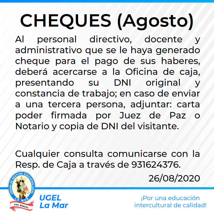 #ChequesAgosto para la entrega de tu cheque debes considerar lo siguiente: