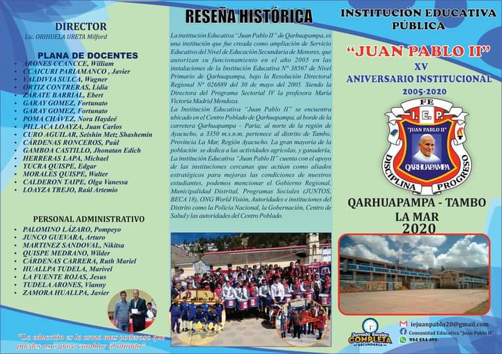 05/10 - XV #AniversarioInstitucional Institución Educativa Pública "Juan Pablo II" - Qarhuapampa/Tambo.