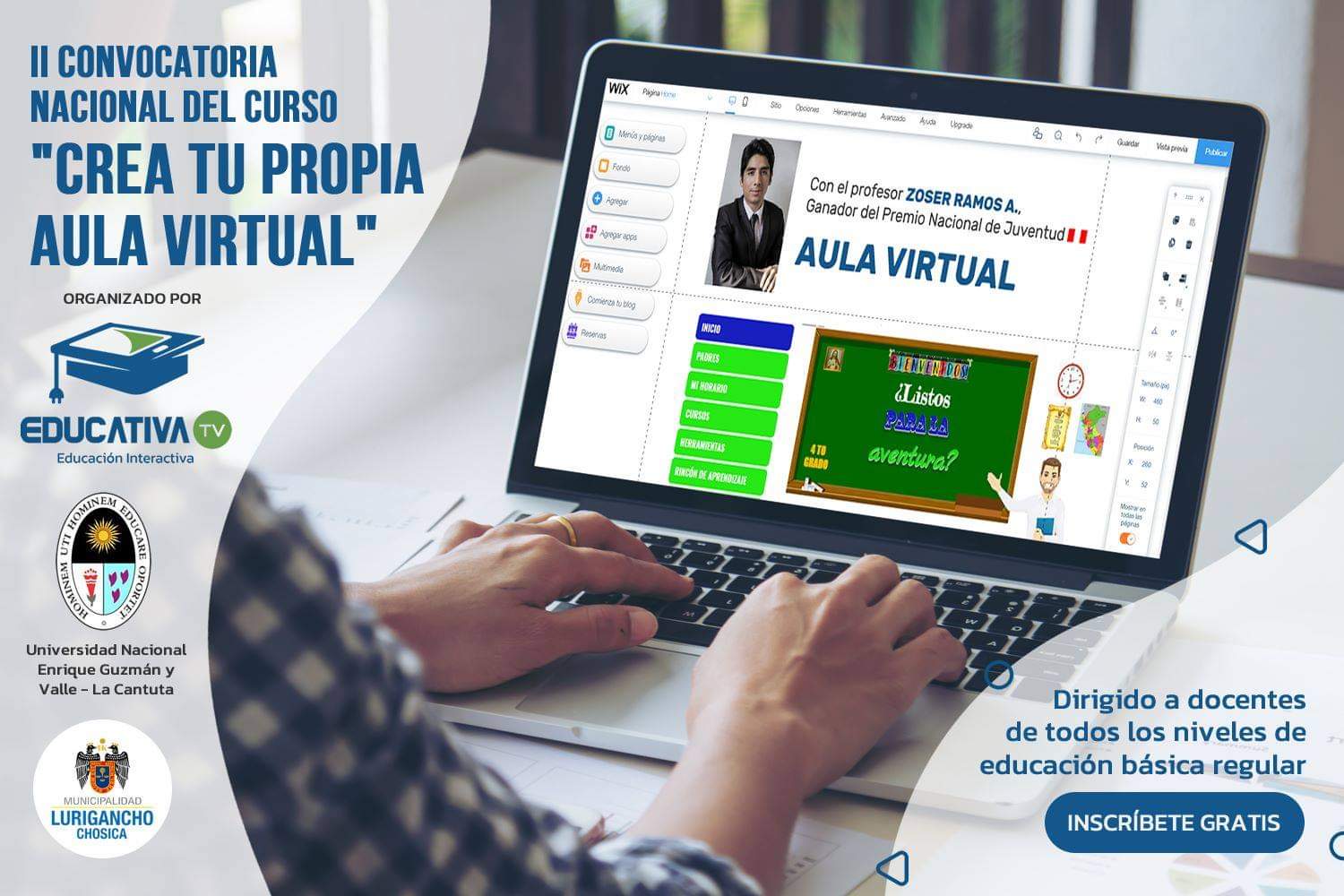 Participa de la segunda convocatoria nacional del curso gratuito "CREA TU PROPIA AULA VIRTUAL", con el profesor Zoser Ramos de la Universidad Nacional Enrique Guzmán Valle.
