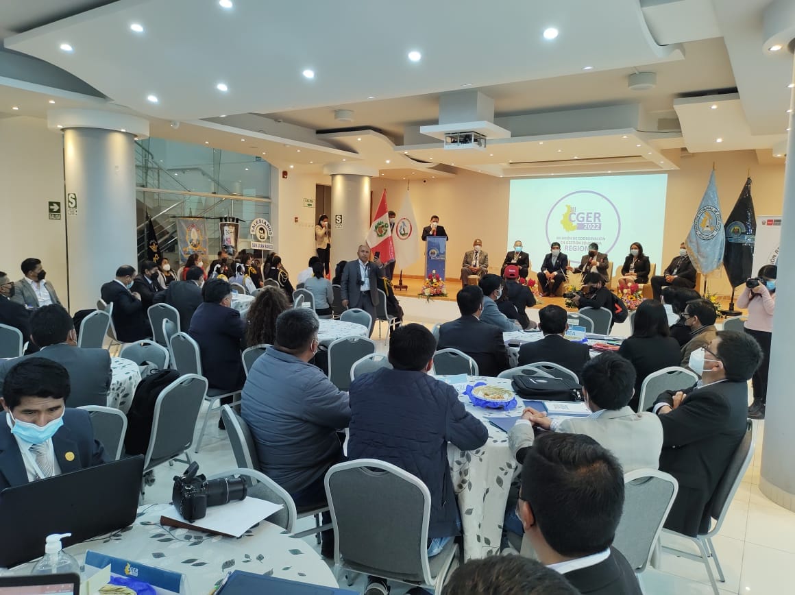 (25 de Julio) Hoy se inició el Tercer Encuentro de Coordinación de Gestión Educativa - CGER 2022, en el auditorio de la Cooperativa San Cristóbal, dónde se hicieron presentes el Gobernador Regional, Director Regional de Educación, Director Regional de Salud, y directores y funcionarios de las 11 Unidades de Gestión Educativa Local, con la finalidad de implementar una agenda de trabajo a corto y mediano para mejorar el servicio educativo en la región Ayacucho.