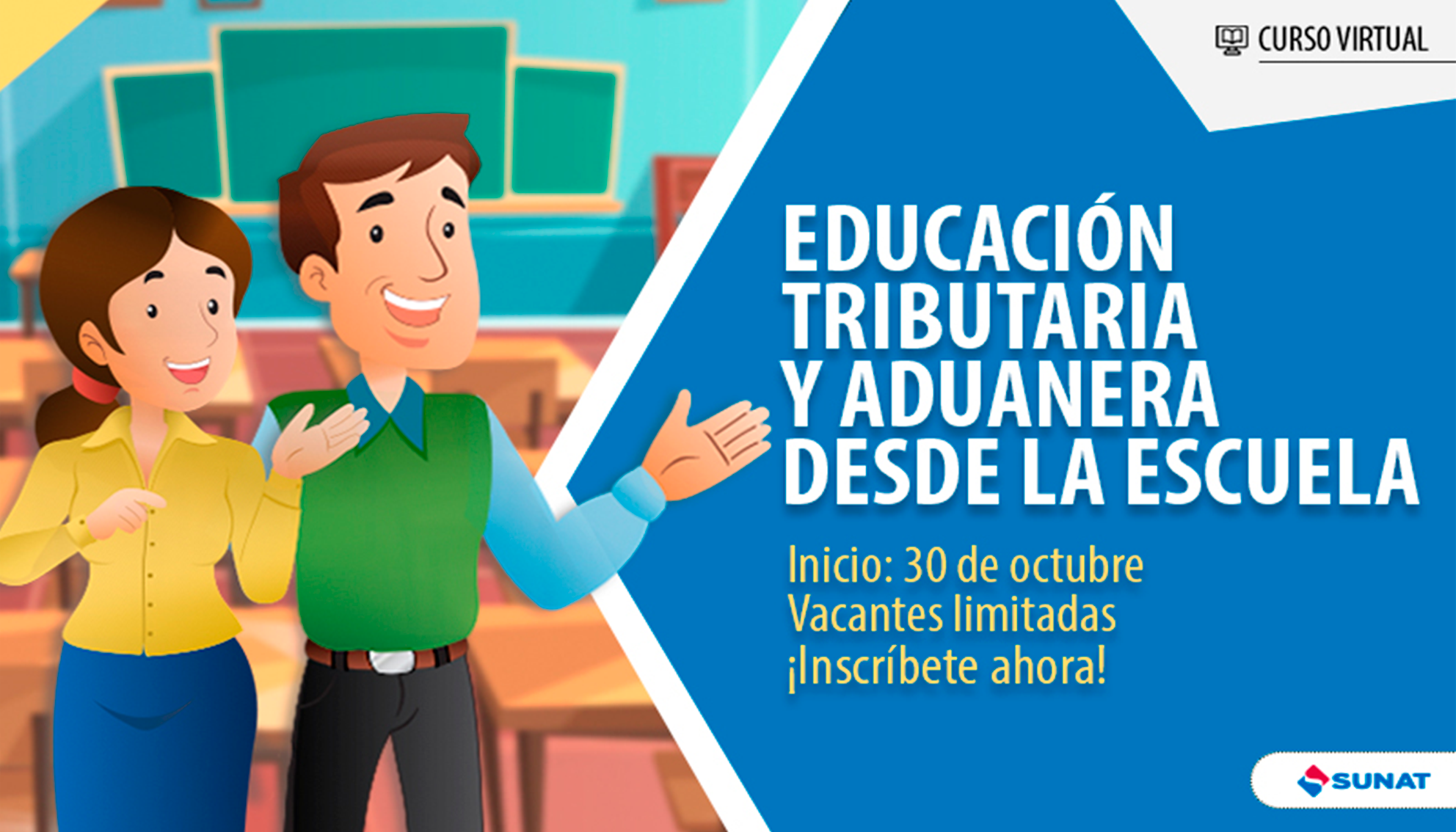 En el marco de la "Semana de la educación tributaria y la lucha contra el contrabando" que se desarrollará en el mes de octubre, la SUNAT, a través del Ministerio de Educación, brindará, de manera gratuita, el curso virtual "Educación Tributaria y Aduanera desde la escuela".