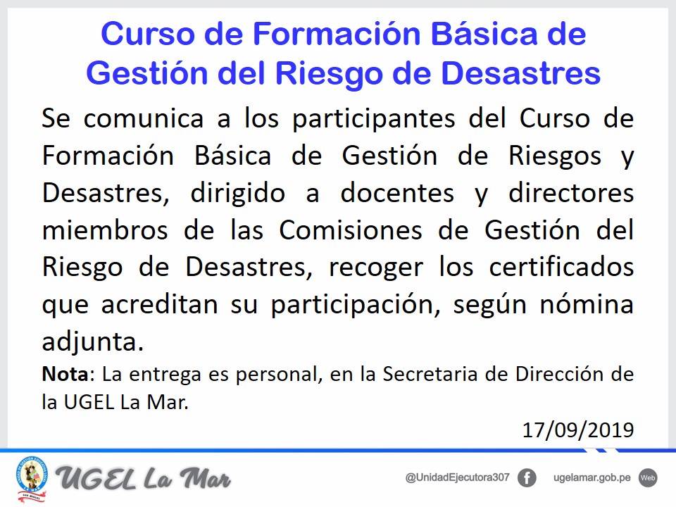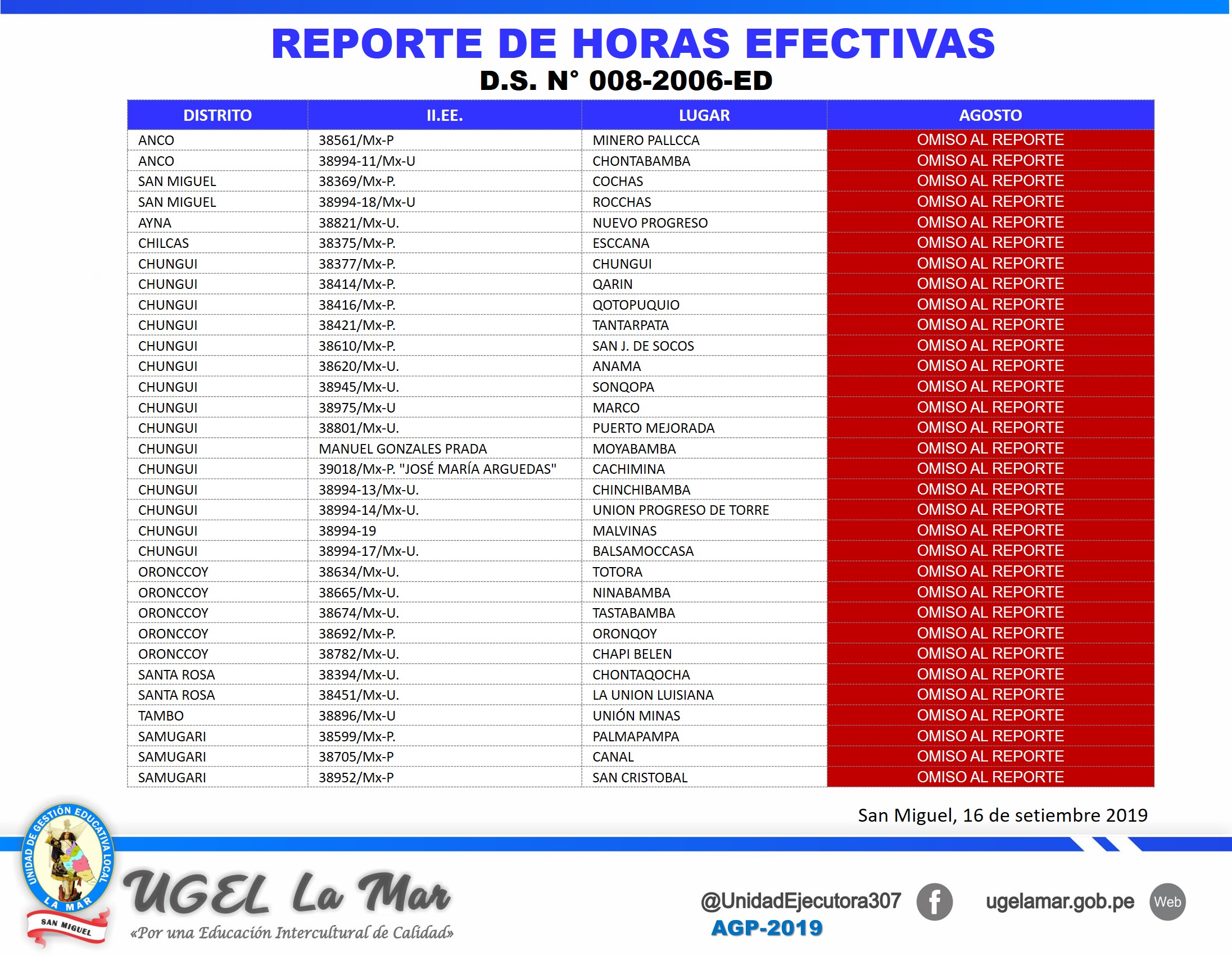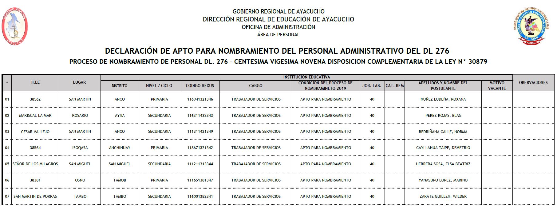 Escrito en 27 Septiembre 2019. Visto: 3131 RESULTADOS FINALES CAS 007-2019 VII - PSICOLOGO RESULTADOS FINALES CAS 008-2019 VII - APOYO EDUCATIVO RESULTADOS FINALES CAS 009-2019 VII - SECRETARIA RESULTADOS FINALES CAS 10-2019 IV - MANTENIMIENTO
