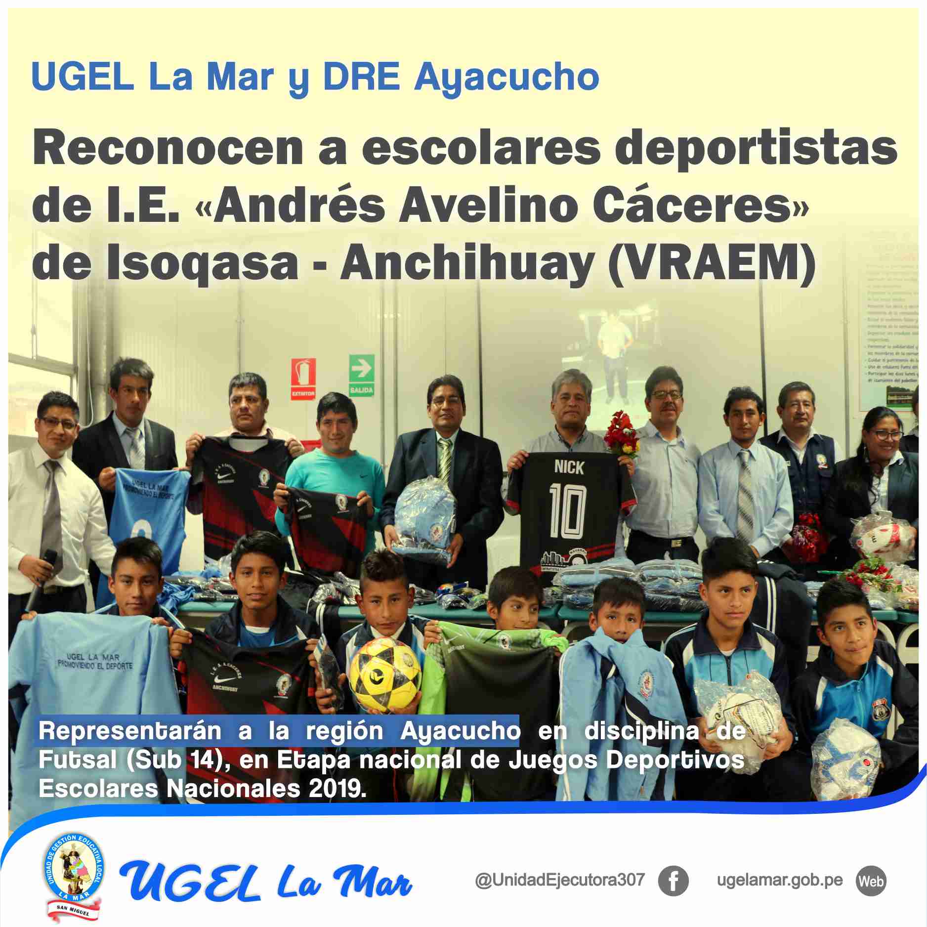 Autoridades del sector educación reconocen a delegación de escolares que representarán a nuestra región en la disciplina de Futsal Sub 14, en la Etapa Nacional de Juegos Deportivos Escolares 2019.