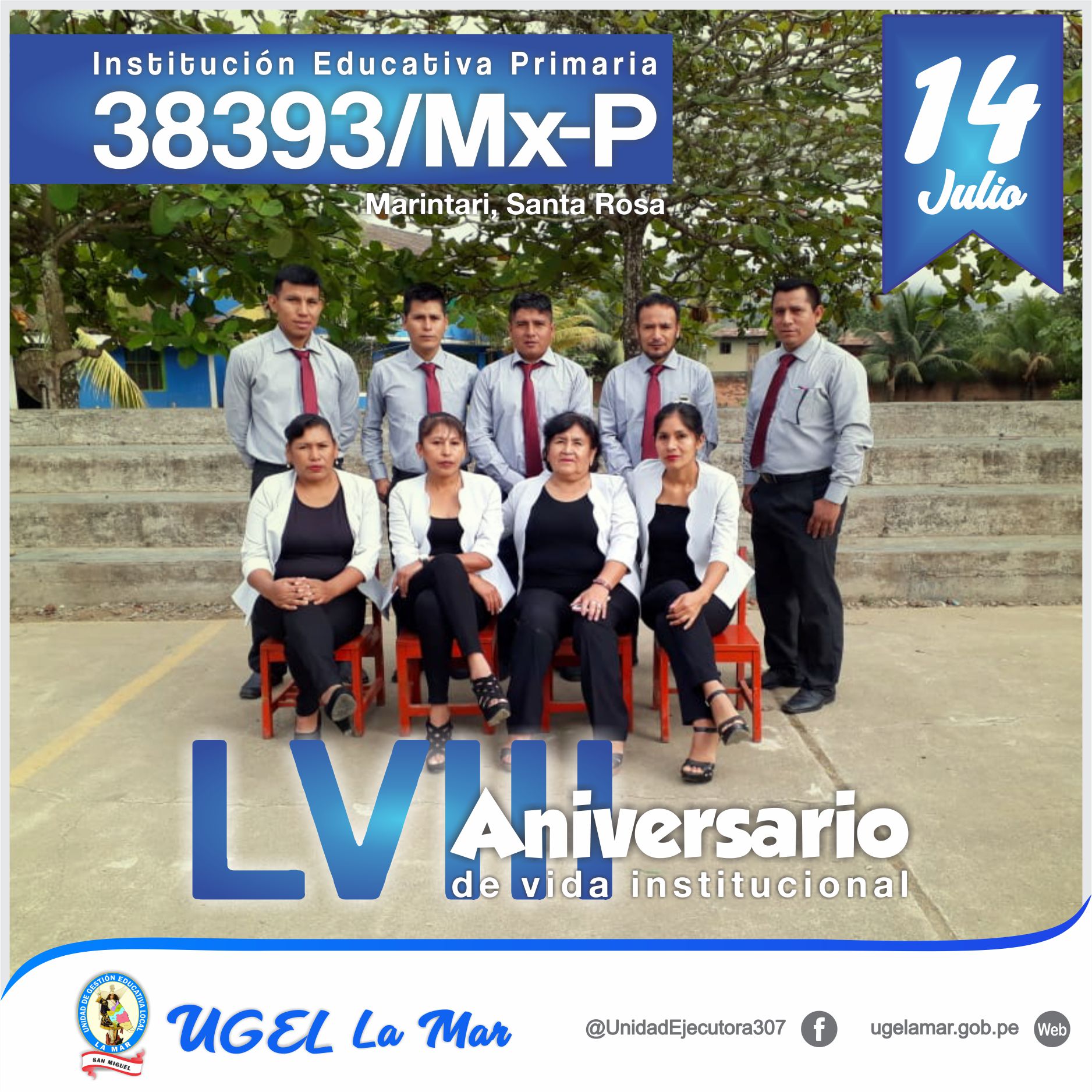 58 años promoviendo educación de calidad, feliz #AniversariodeVidaInstitucional I.E. N° 38393, de Marintari - Santa Rosa.