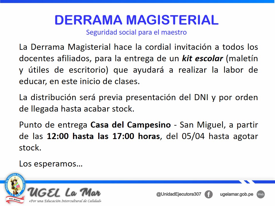 Escrito en 27 Marzo 2019. Visto: 3572 Relación de cheques correspondiente del pago de haberes y descuento judicial correspondiente al mes de marzo 2019. La entrega se Realizará previa presentación de la constancia de Trabajo