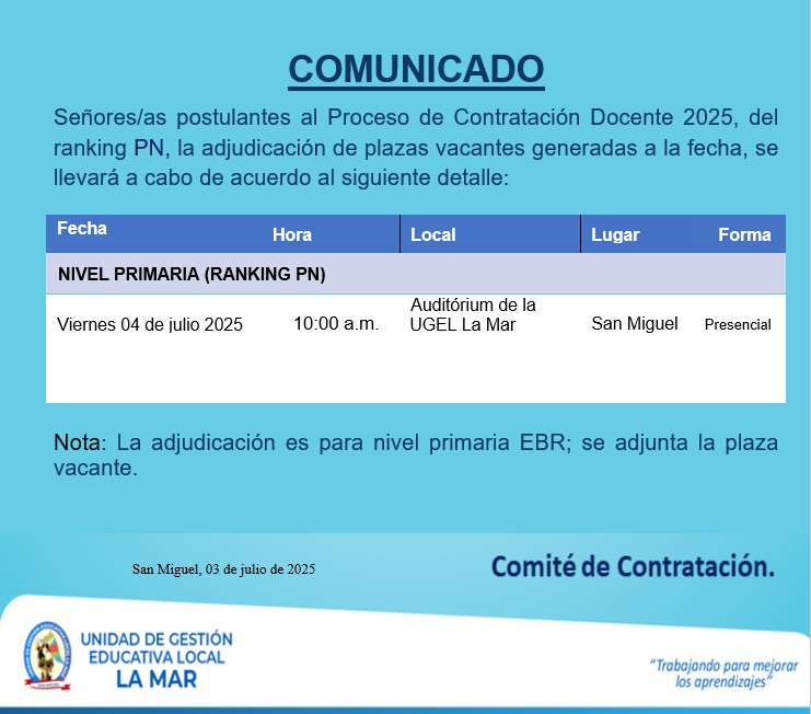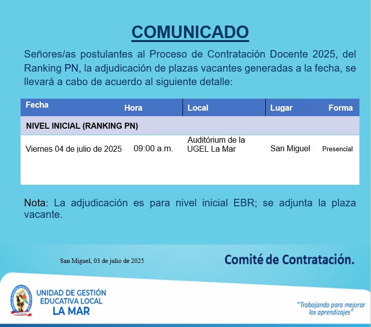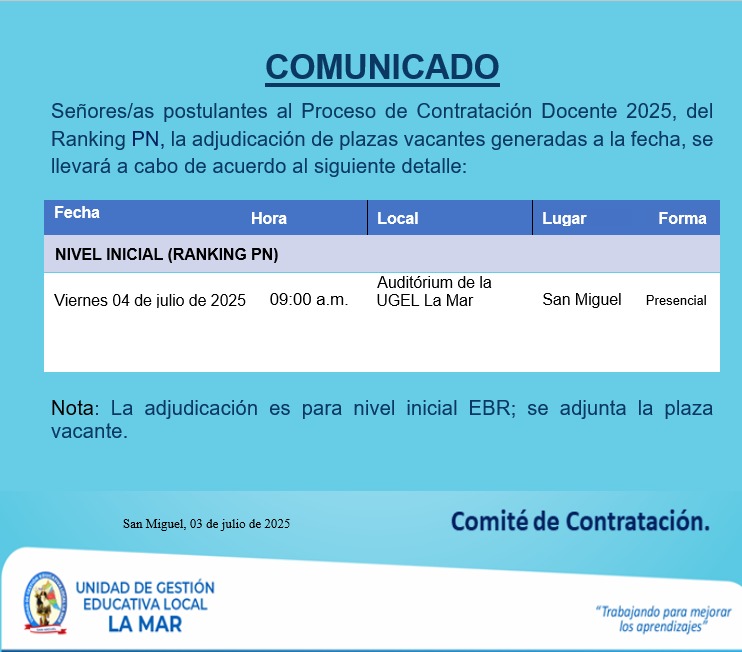 CRONOGRAMA PARA LA CONTRATACIÓN DOCENTE 2025