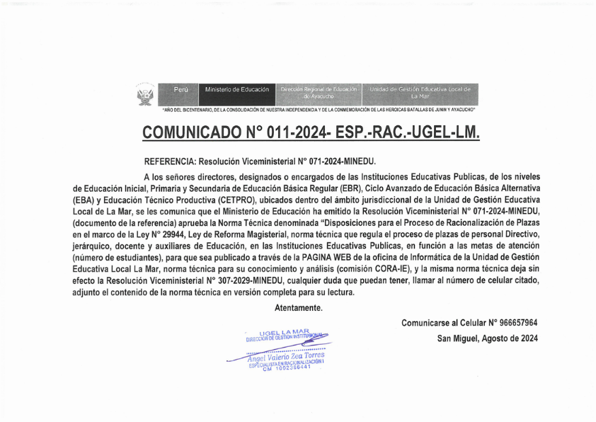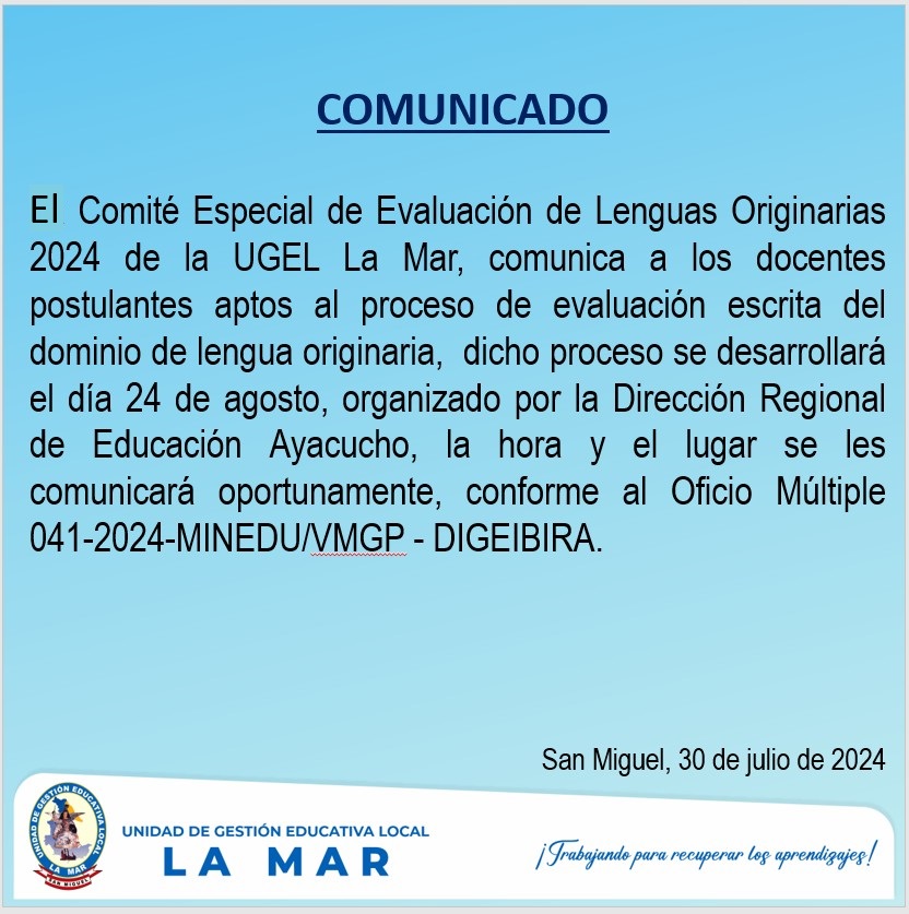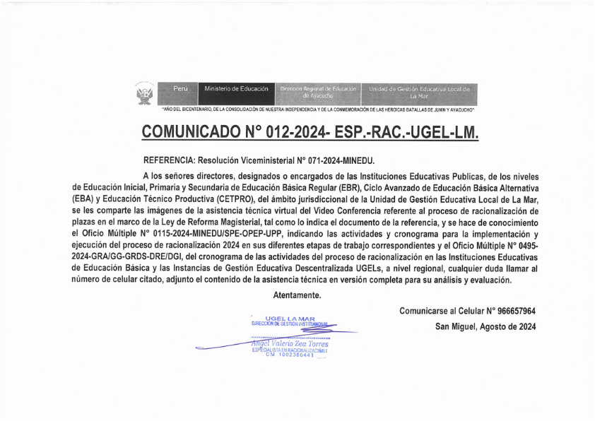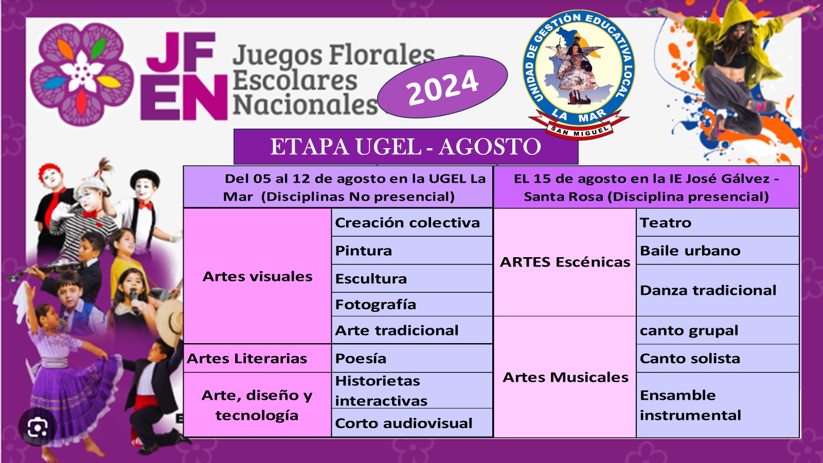 Señores Directores(as) de educación básica, se comunica el cronograma de ejecución de los Juegos Florales Escolares Nacionales 2024.