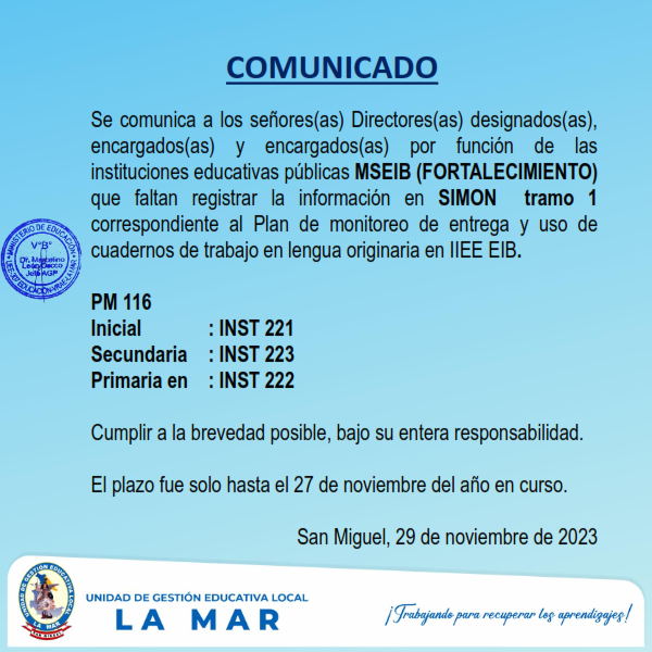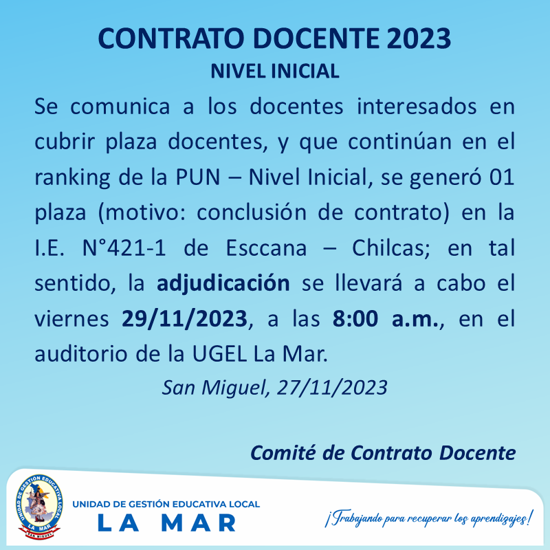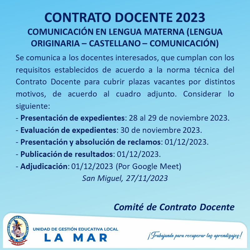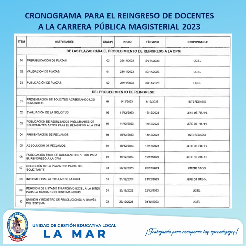 Comunica Cronograma de Actividades para la implementación del procedimiento de REINGRESO DE LOS DOCENTES A LA CARRERA PÚBLICA MAGISTERIAL DE LA LEY DE LA REFORMA MAGISTERIAL PARA EL AÑO 2023.
