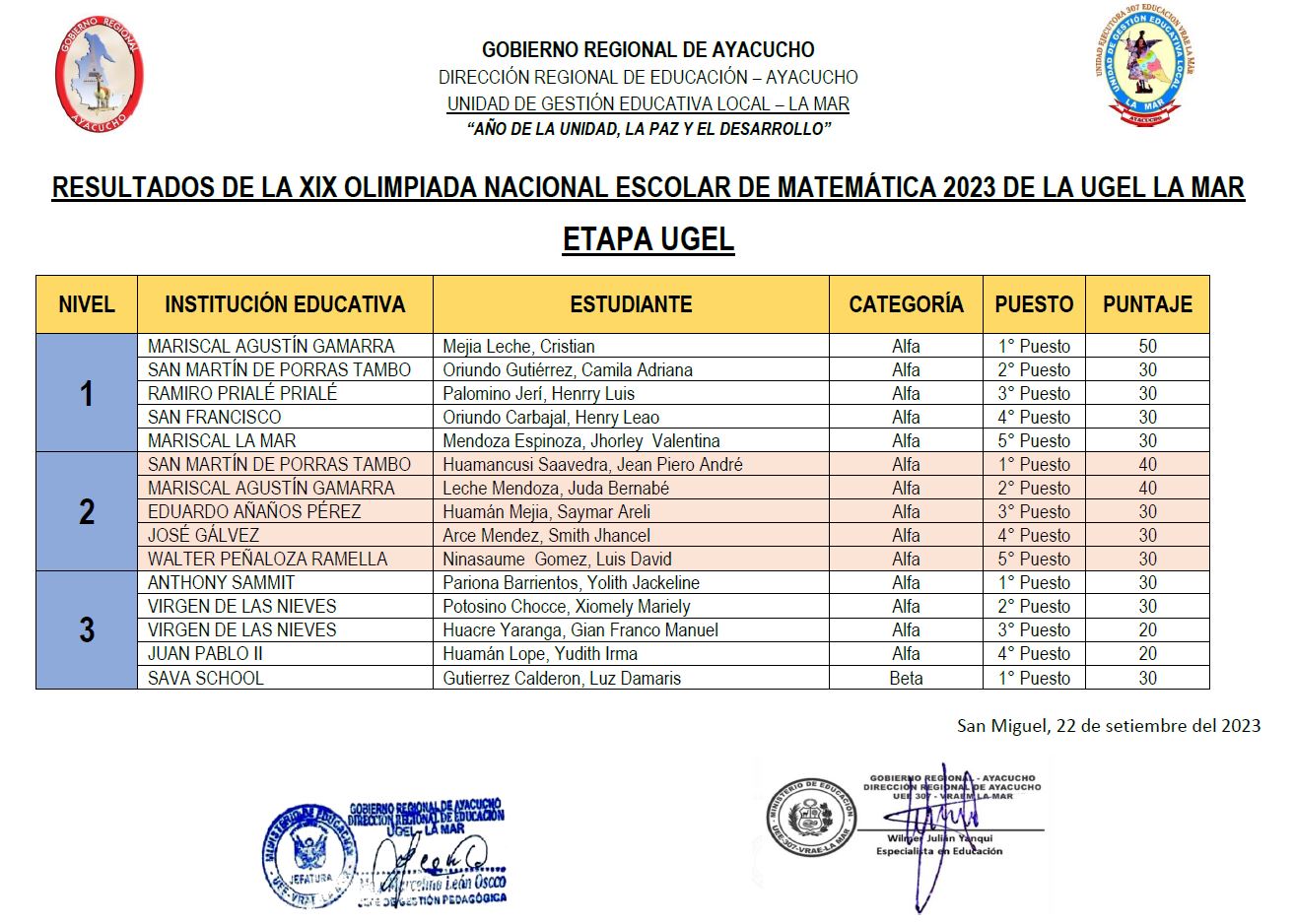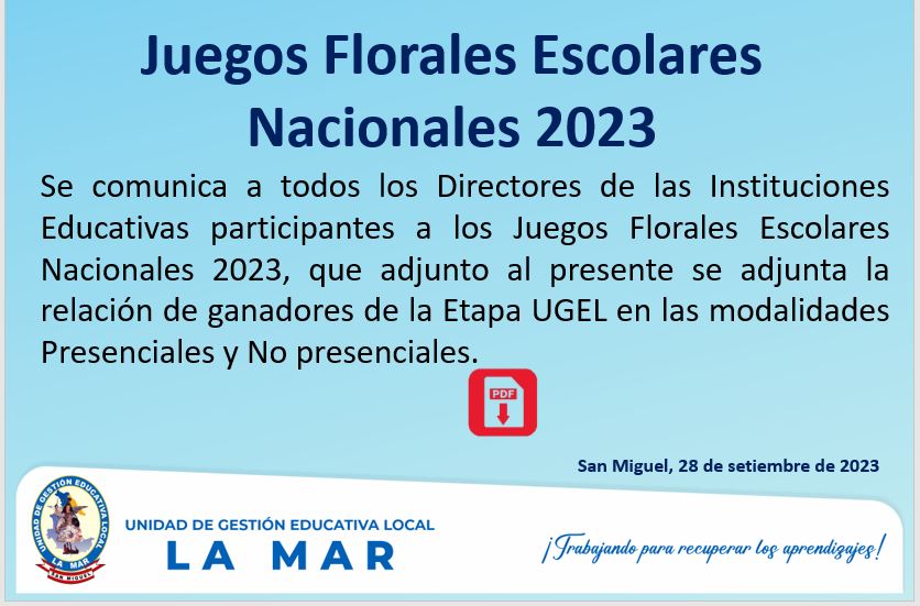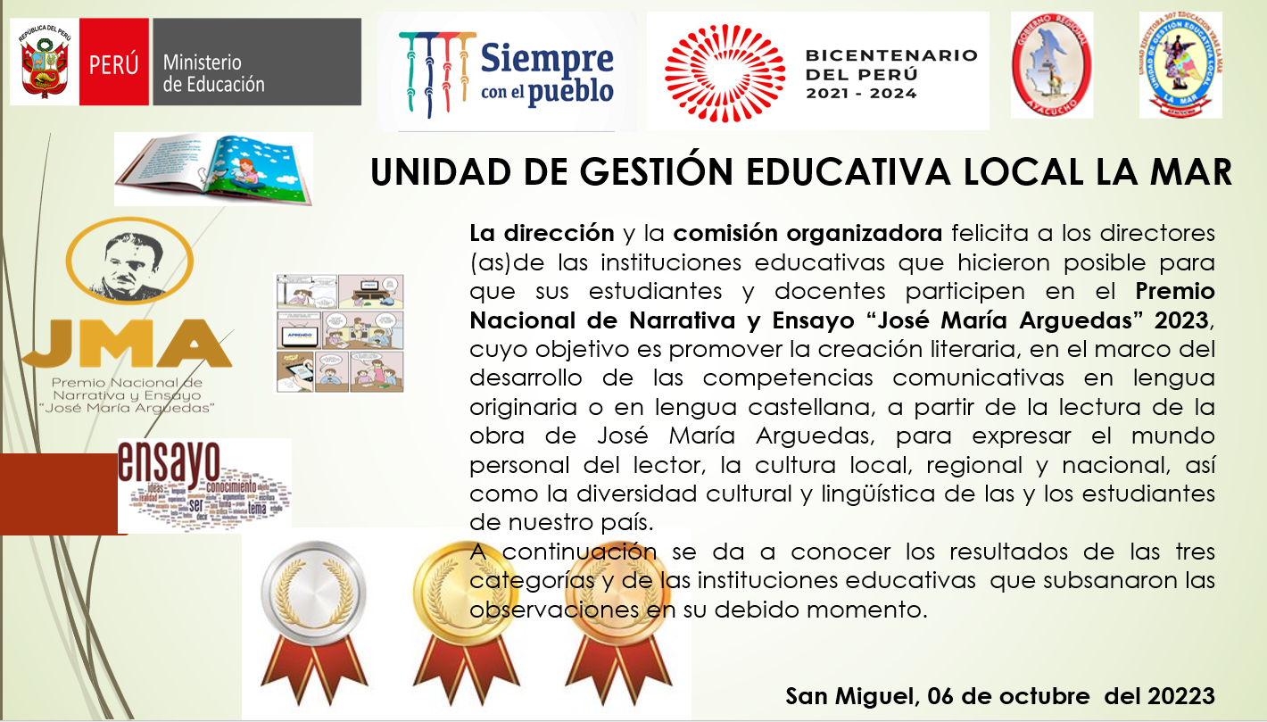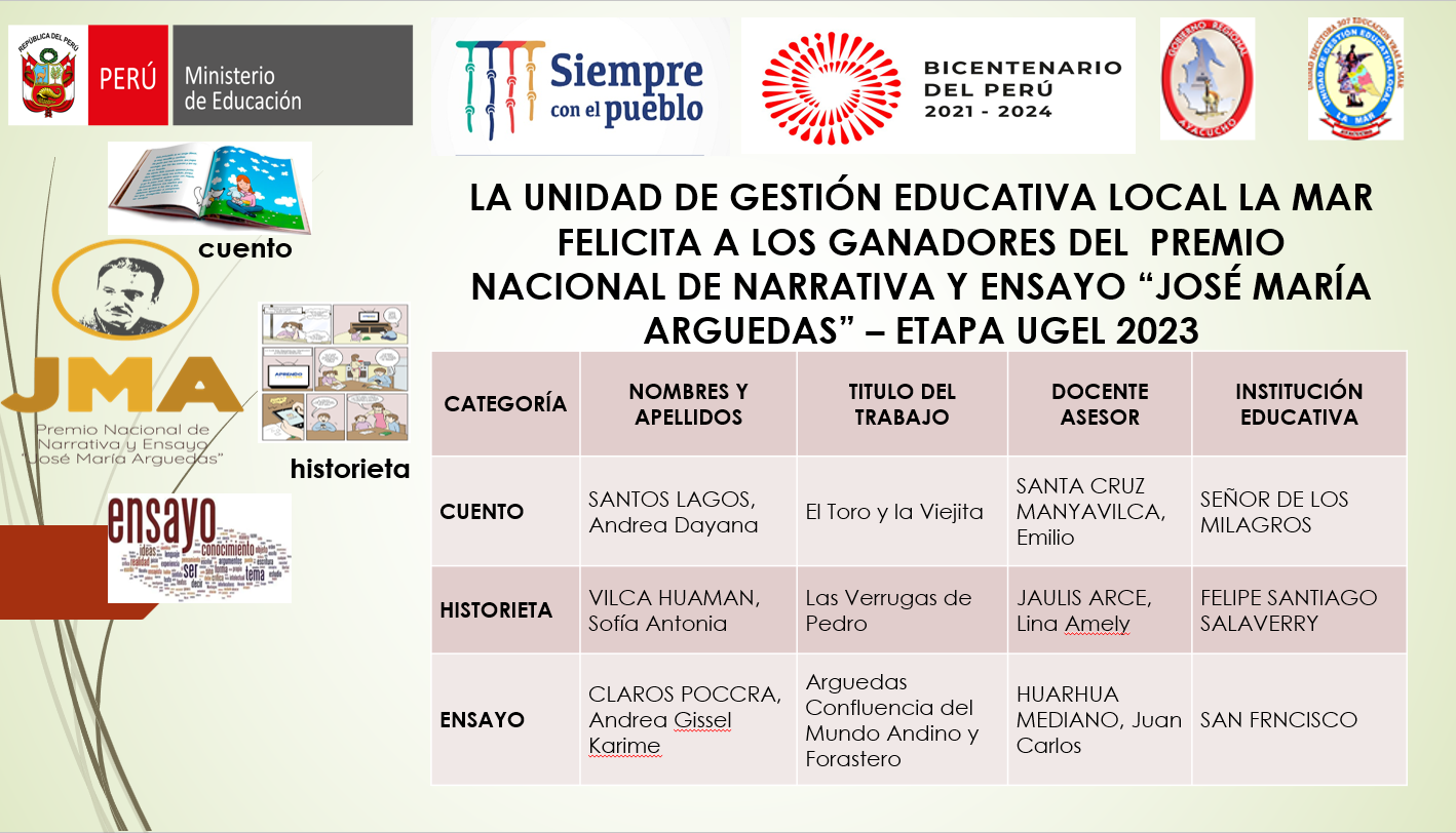 GANADORES DEL PREMIO NACIONAL DE NARRATIVA Y ENSAYO “JOSÉ MARÍA ARGUEDAS” – ETAPA UGEL 2023