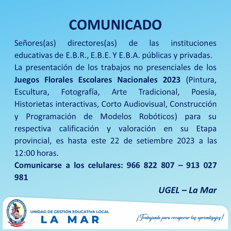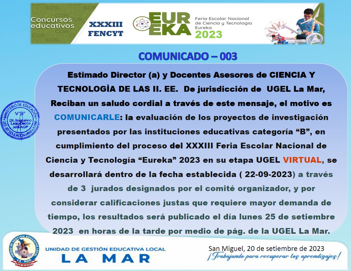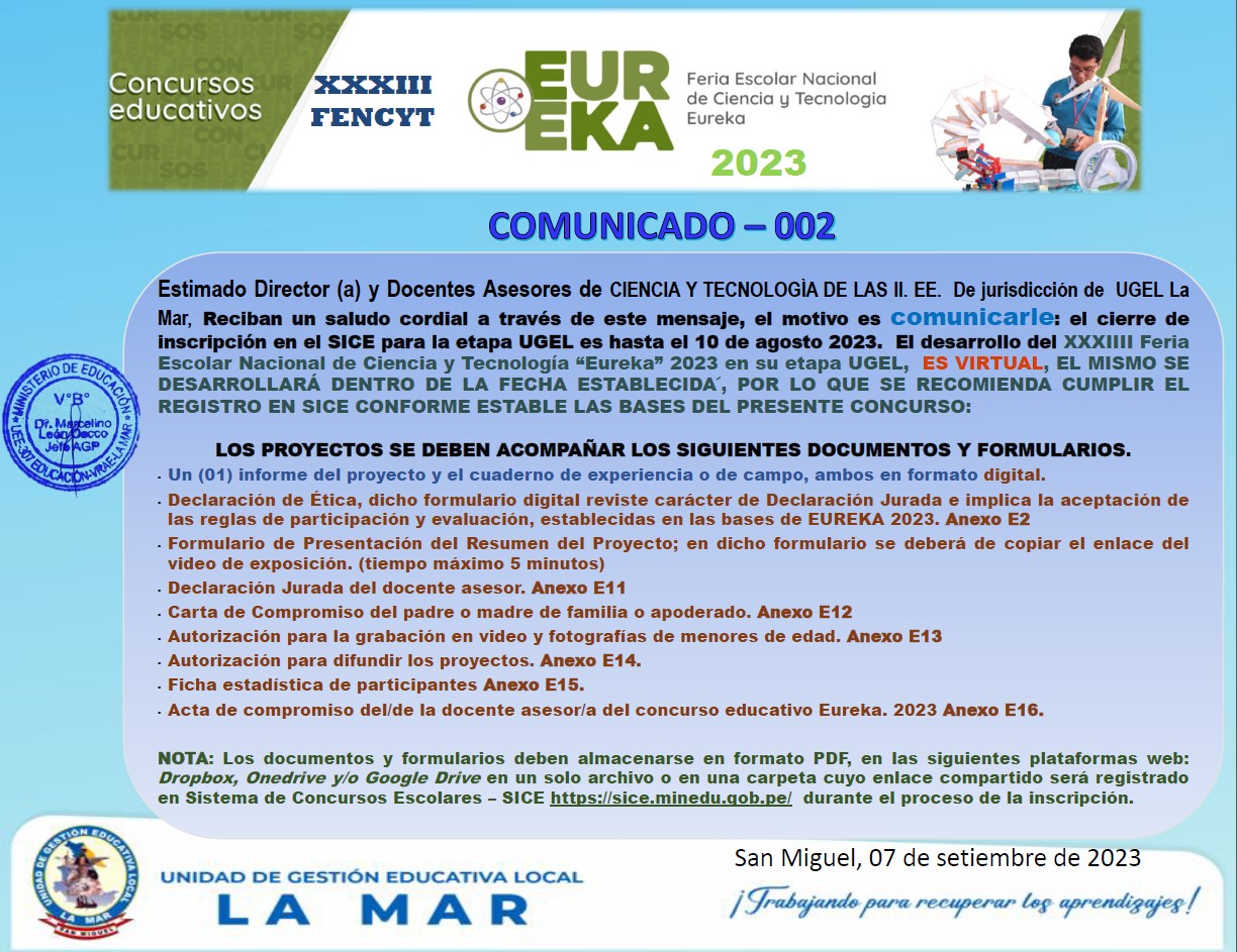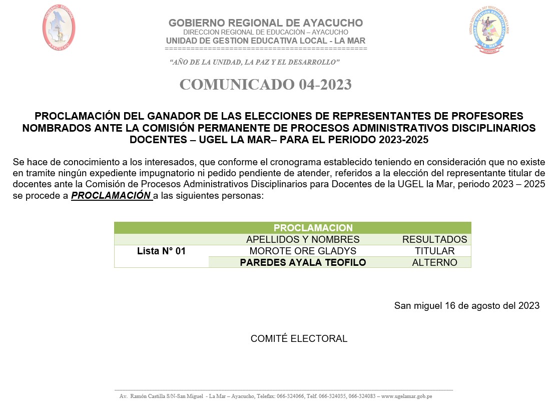 Convoca a reunión virtual para la socialización de los resultados del 1er monitoreo sobre los compromisos de Gestión Escolar, PEI y PAT - UGEL La Mar 2023.