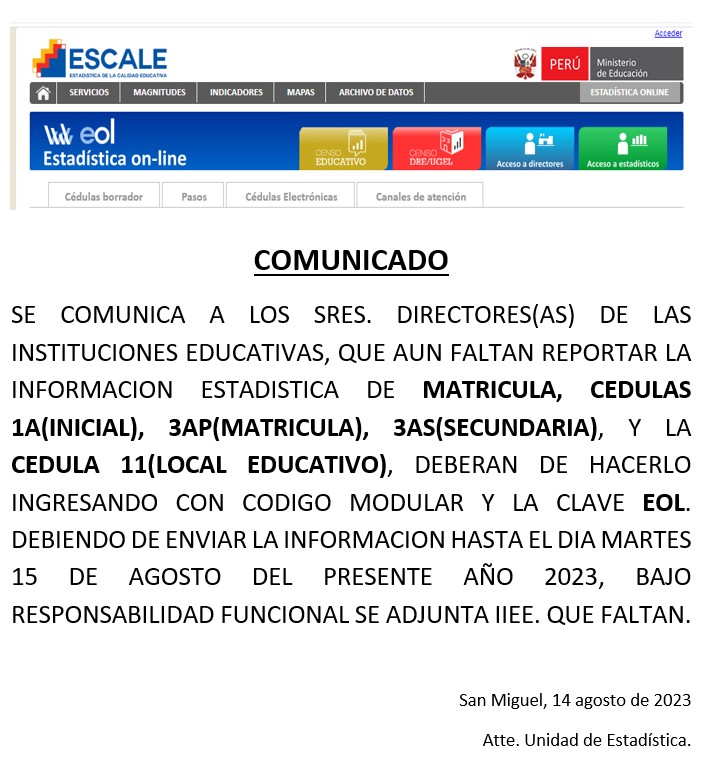 Ver IIEE omisos al reporte de la cedulas actualizado al 15.08.2023