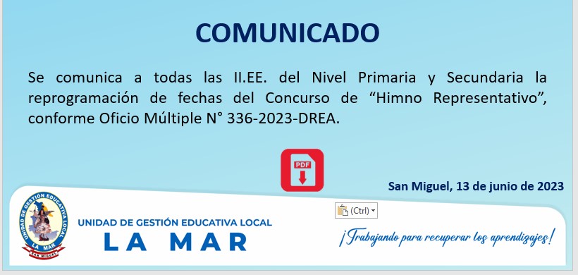 Escrito en 25 Mayo 2023. Visto: 2392 CRONOGRAMA DEL PROCESO DE REASIGNACIÓN DOCENTE - 2023 (CAUSALES DE: INTERÉS PERSONAL Y UNIDAD FAMILIAR)