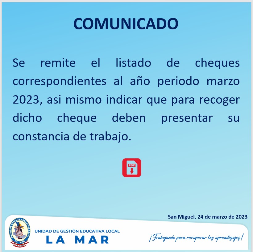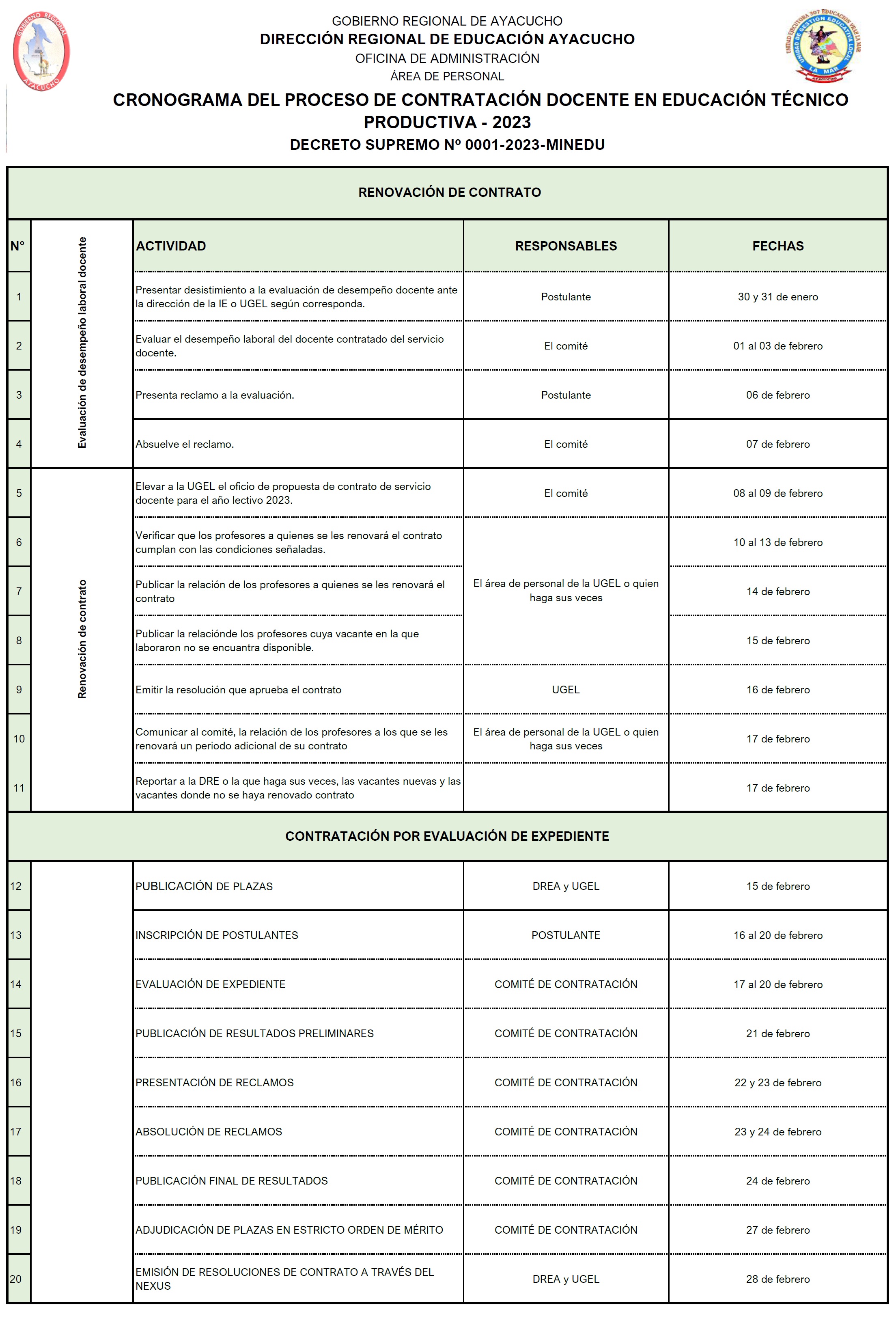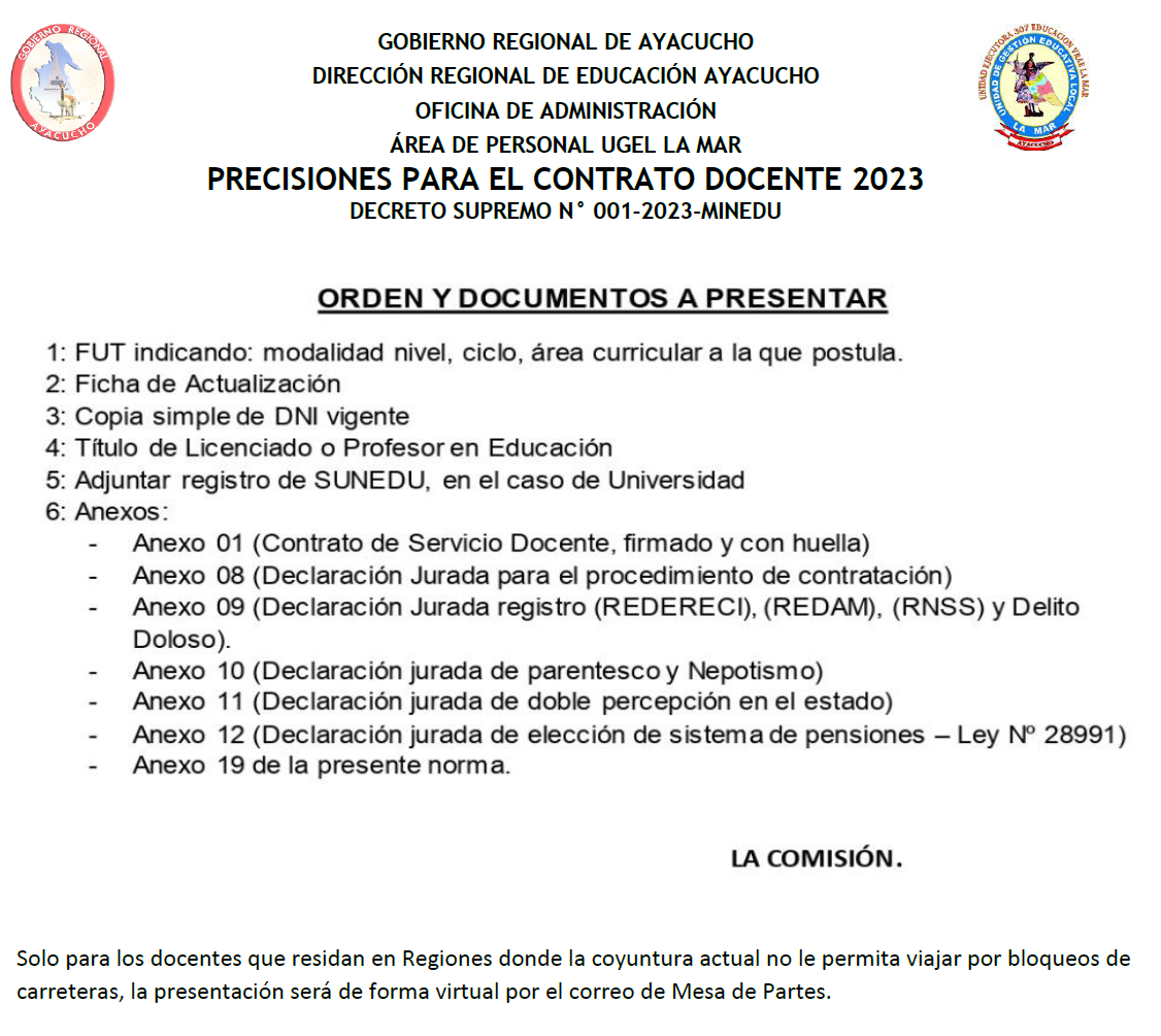 Escrito en 30 Enero 2023. Visto: 3873 Cronograma y Precisiones para el Proceso de Contrato Docente 2023 Descargar Anexos desde el siguiente link Descargar Ficha de Actualización de datos Aquí