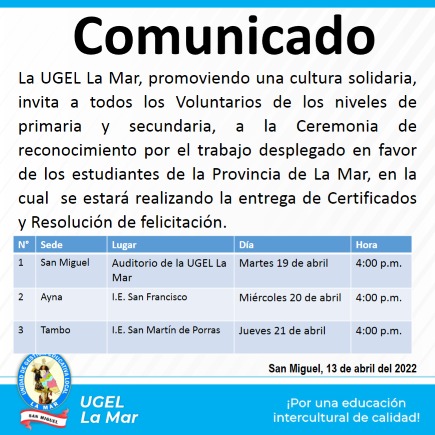 Escrito en 13 Abril 2022. Visto: 2969 Convocatoria al IX Concurso Escolar Buenas Practicas para el ahorro de agua. Oficio Múltiple 052-2022-UGEL-LM