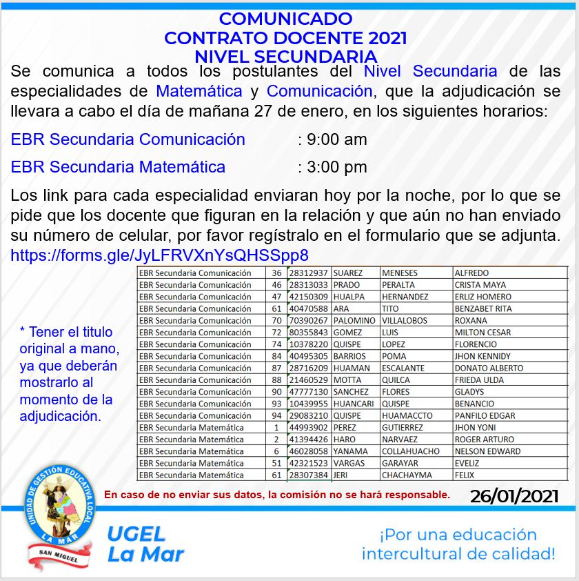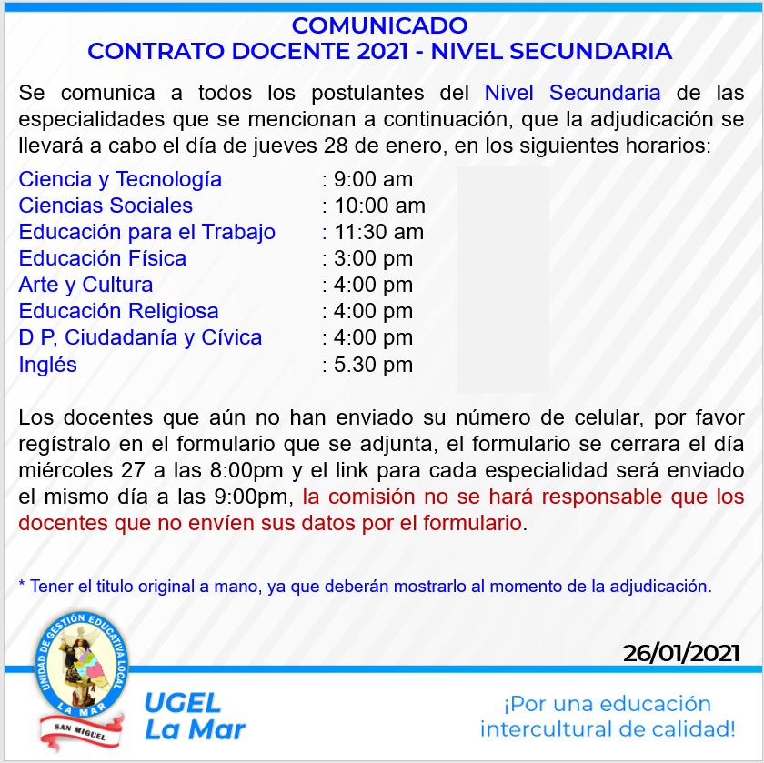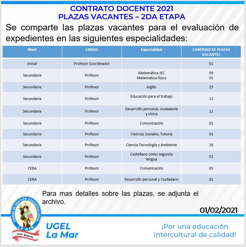 Escrito en 27 Enero 2021. Visto: 3471 Link para Llenar el formulario https://forms.gle/rhqyy9s8dUvS2MH77 Ver Plazas vacantes Secundaria Aquí