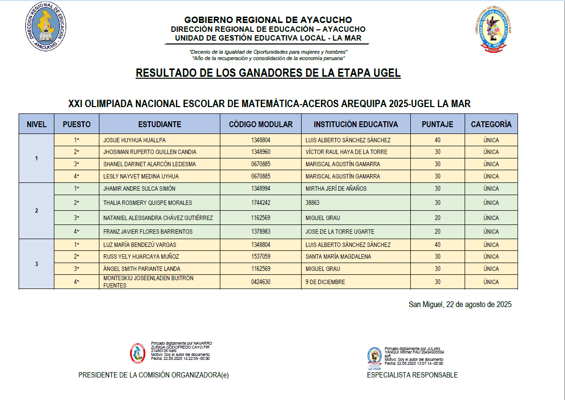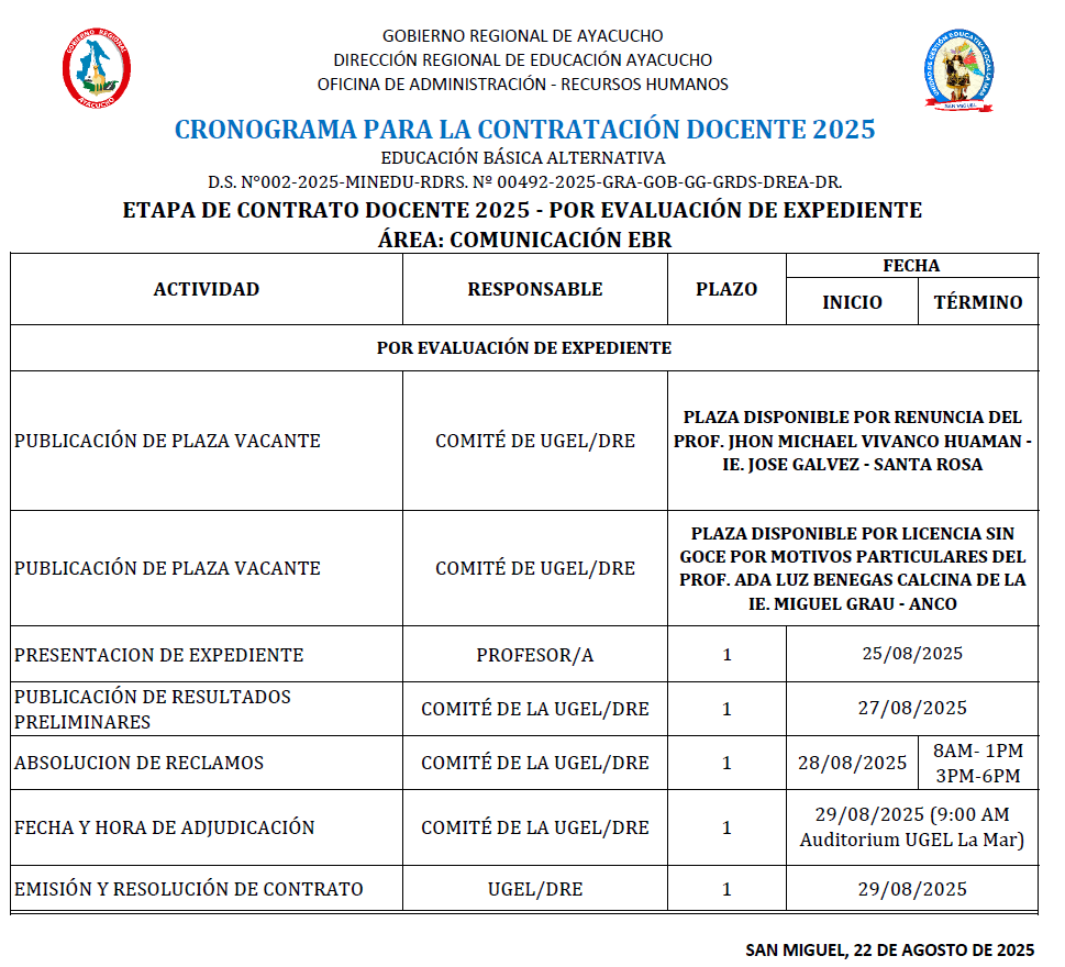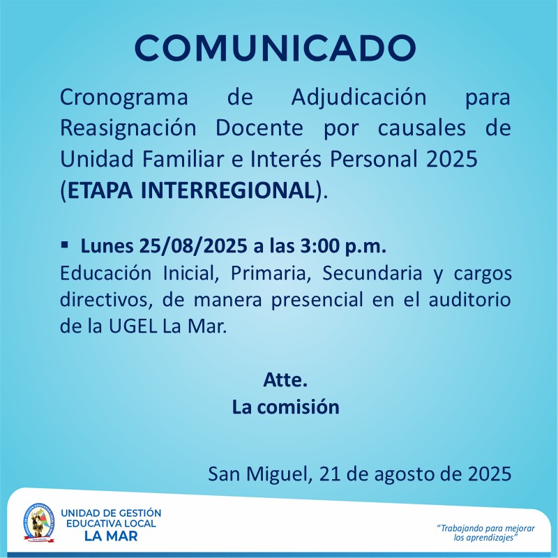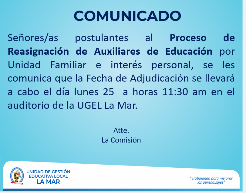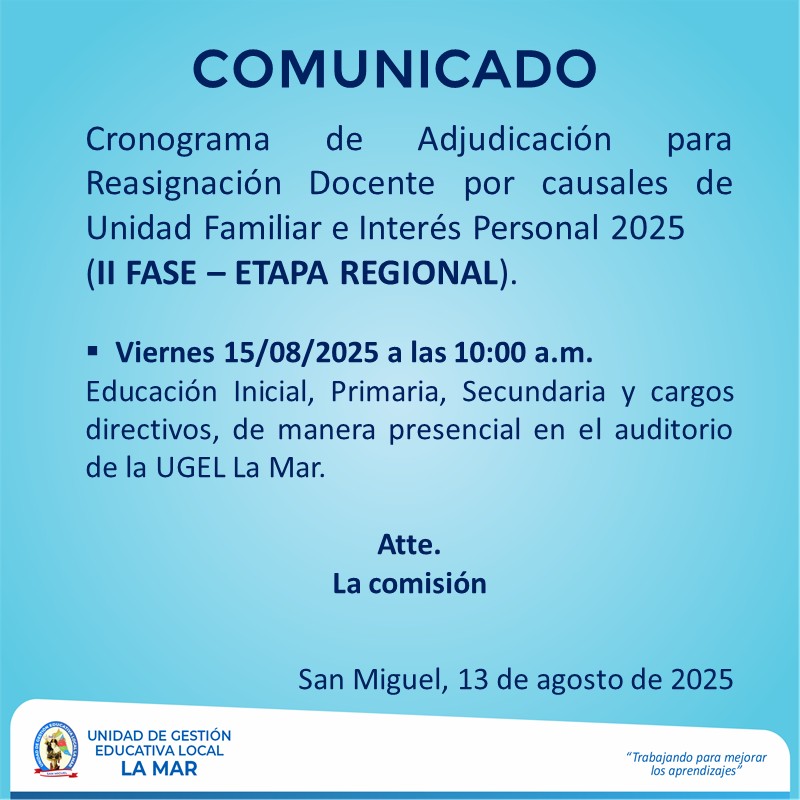 Escrito en 22 Agosto 2025. Visto: 569 RESULTADOS FINALES DEL PROCESO DE REASIGNACIÓN DE AUXILIARES DE EDUCACIÓN POR UNIDAD FAMILIAR E INTERÉS PERSONAL (ETAPA REGIONAL)