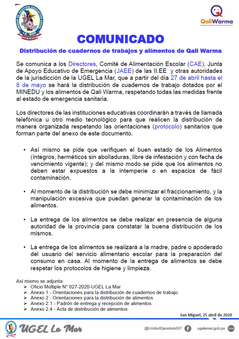 Descargar Oficio Múltiple N° 027-2020-UGEL La Mar