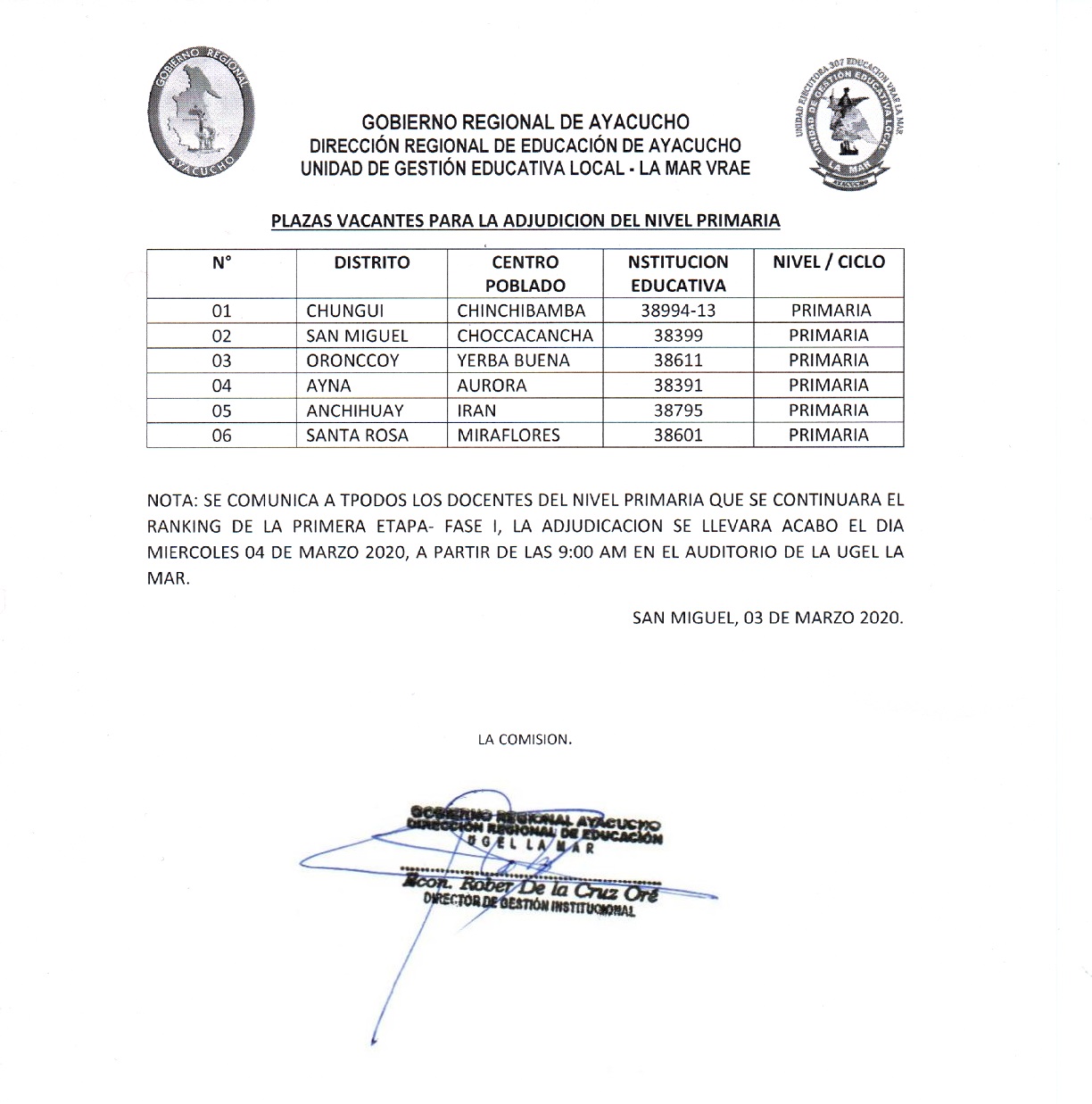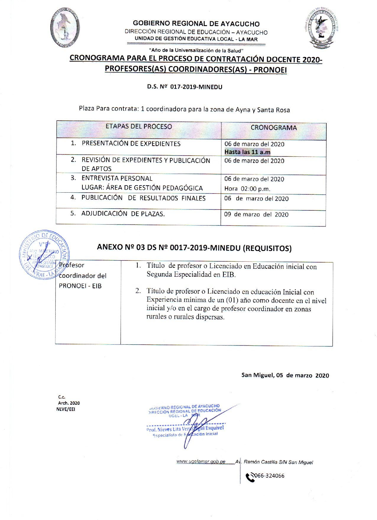 Escrito en 06 Marzo 2020. Visto: 3042 Resultados Finales del proceso de contratación de docentes para Coordinadoras de PRONOEI