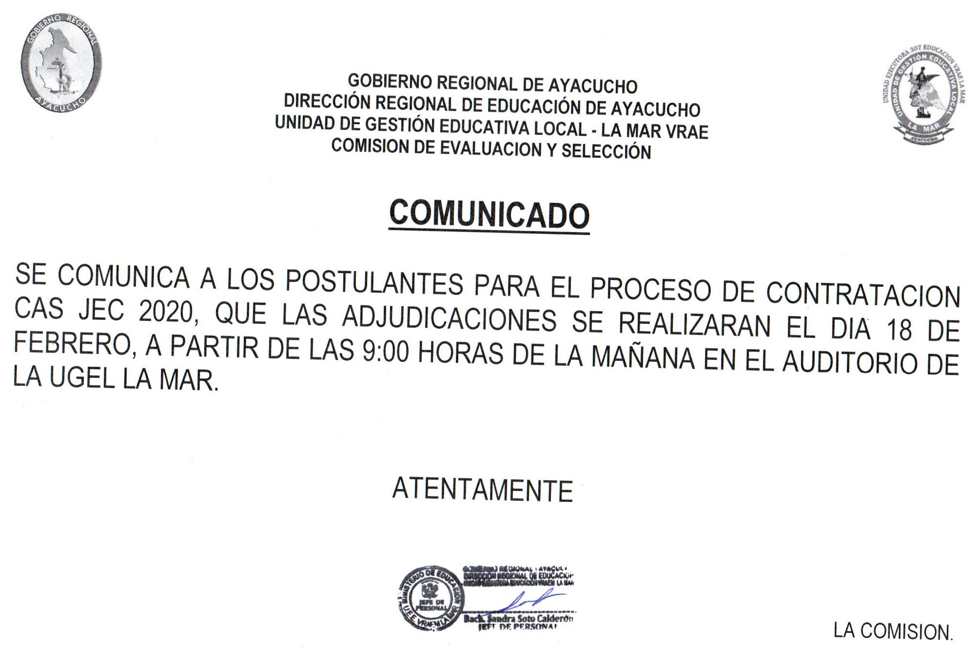 CONVOCATORÍA PARA COORDINADOR DISTRITAL, EN EL PROGRAMA DE ALFABETIZACIÓN 2020 EN LA UGEL LA MAR