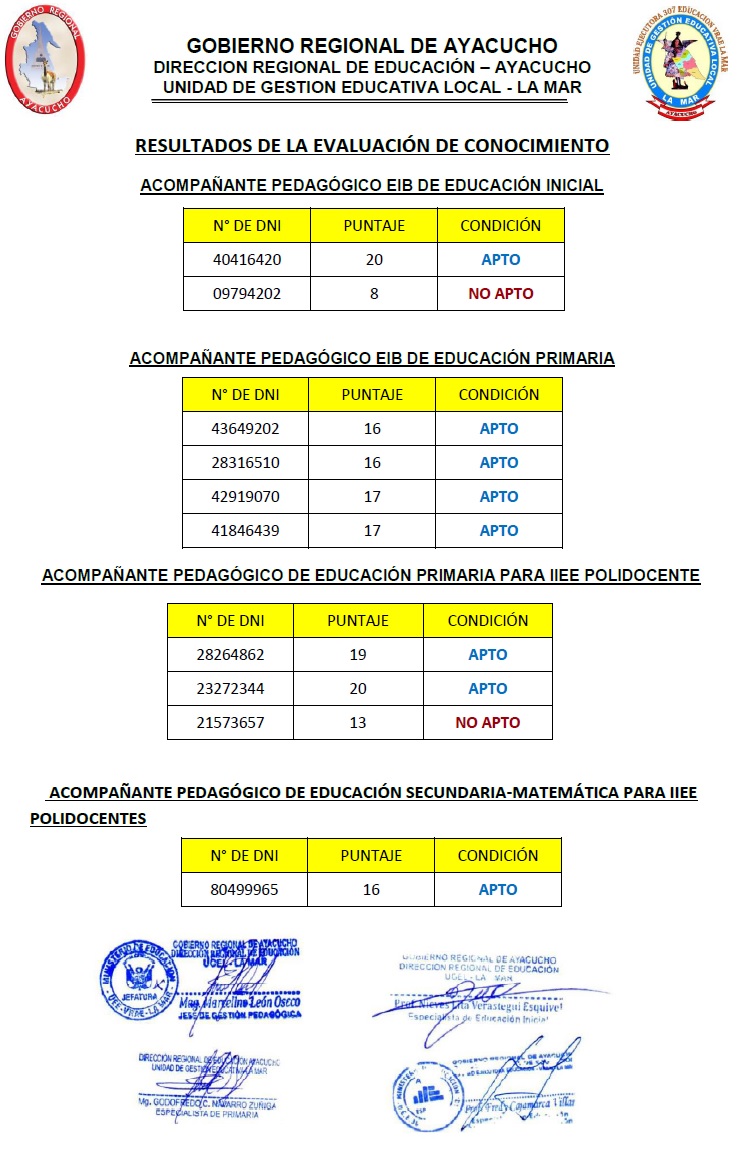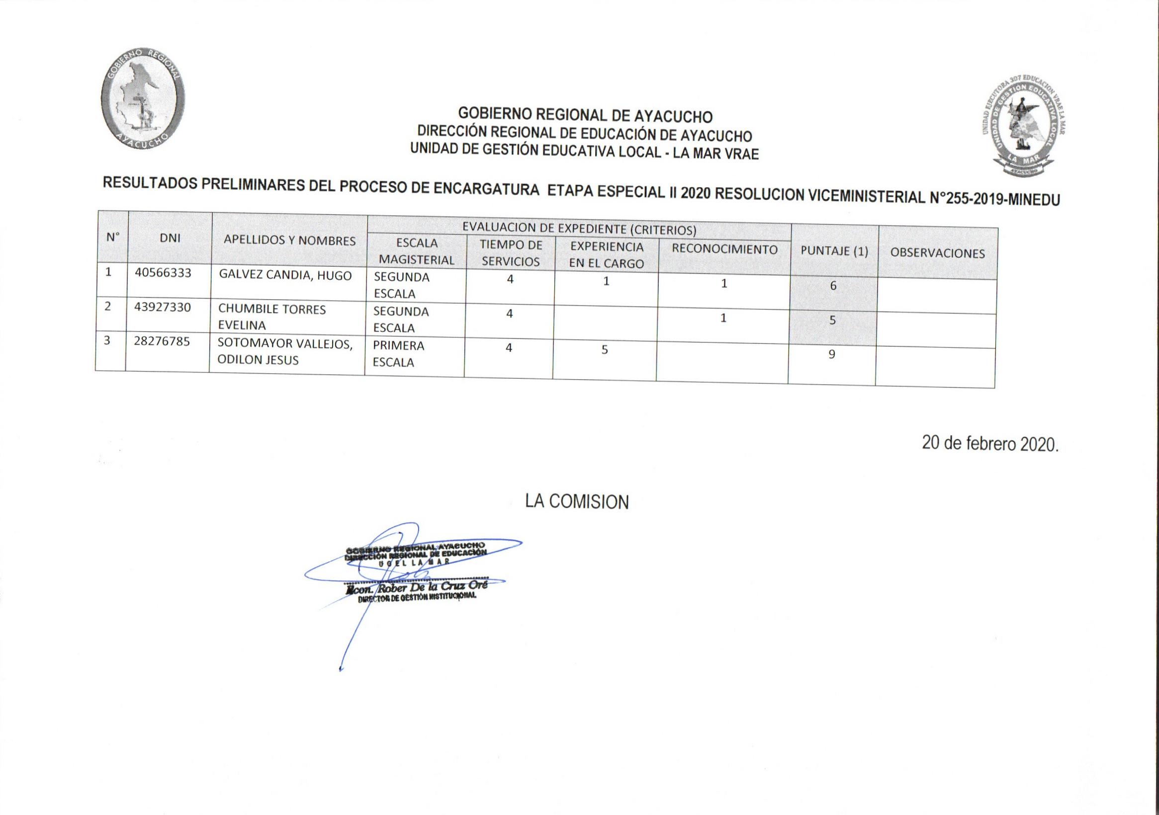 RESULTADOS PRELIMINARES DE LA EVALUACIÓN DE EXPEDIENTES PARA ACOMPAÑANTE Y FACILITADOR DEL EQUIPO BASE DEL PROGRAMA DE ALFABETIZACIÓN-2020 - DISTRITO SAN MIGUEL