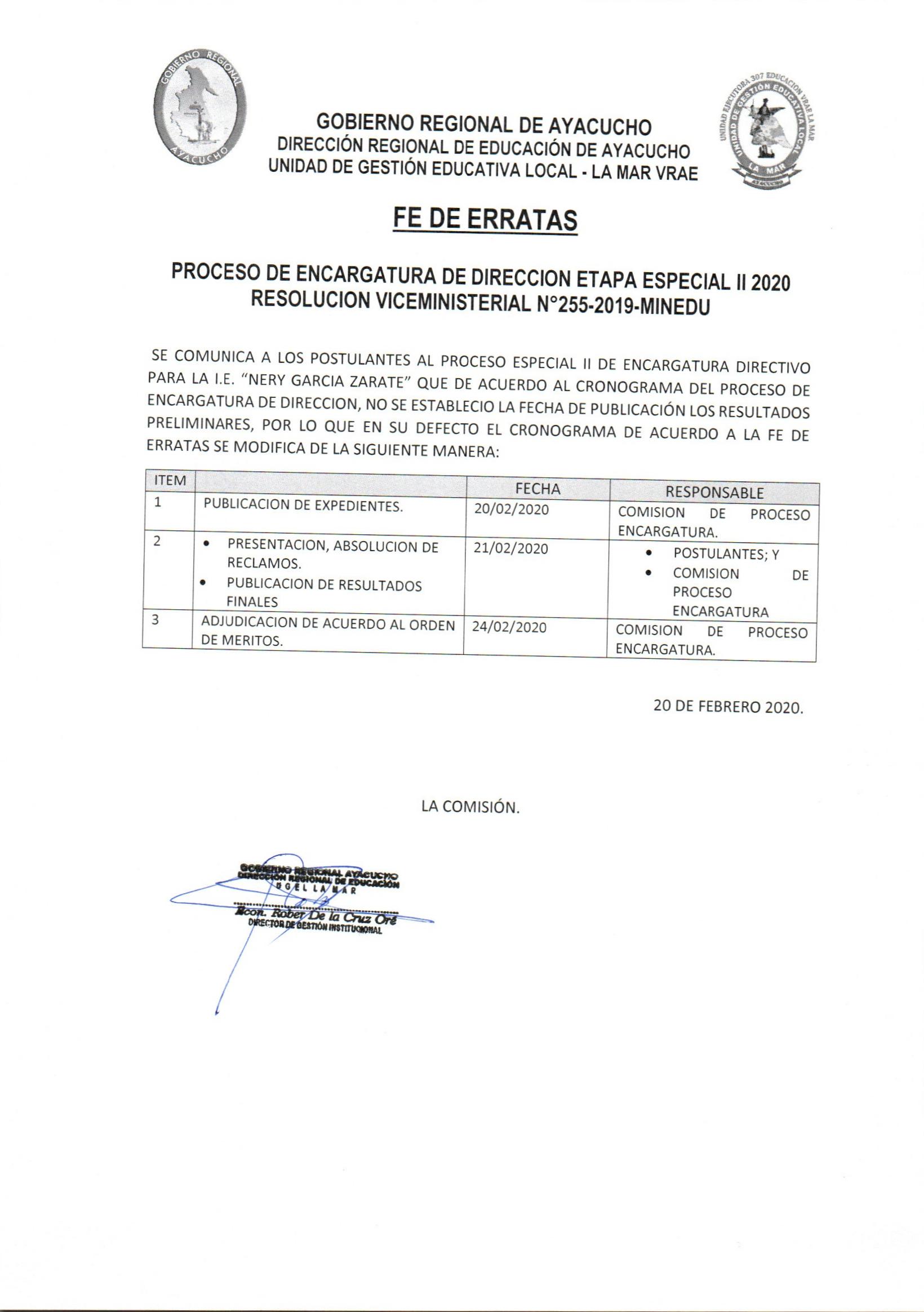 CRONOGRAMA DEL PROCESO DE ENCARGATURA ETAPA ESPECIAL II 2020