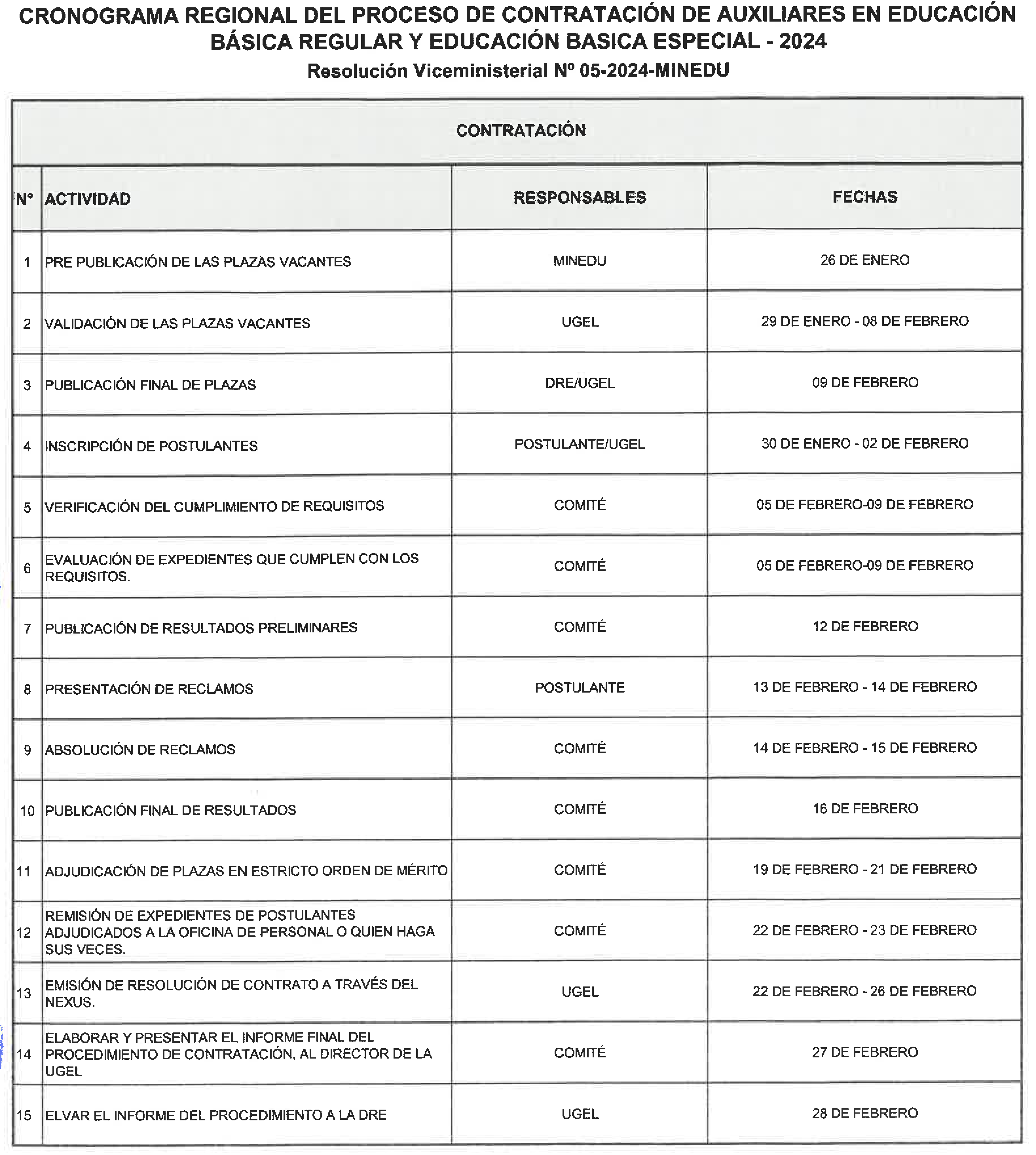 Proceso de Contratación de Auxiliares de Educación Básica Regular y Educación Básica Especial 2024.