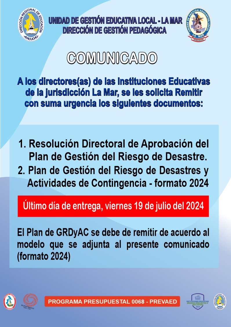 Solicita remitir del Plan de Gestión del Riesgo de Desastres y Actividades de Contingencia con formato actualizado 2024.