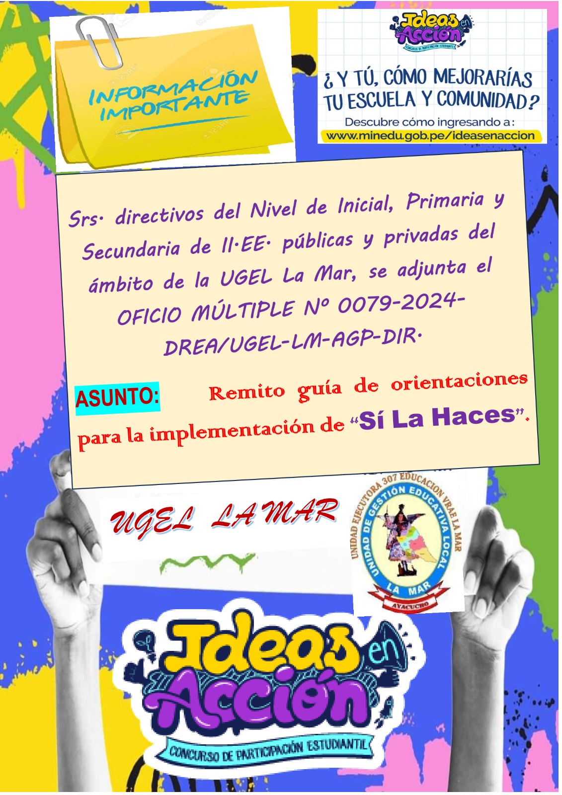 En el marco de promoción de la participación estudiantil (SOMOS PARES - TOE), la UGEL La Mar se suma y les compartimos las orientaciones de la primera acción: SI LA HACES para los tres niveles.