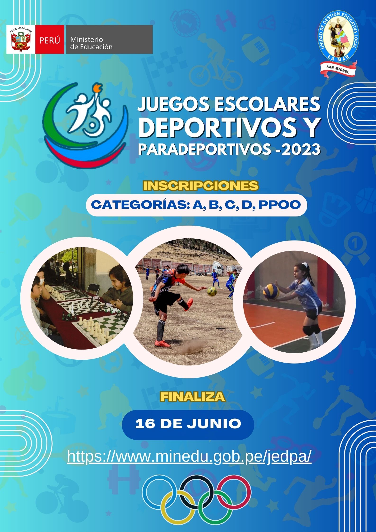 Iniciamos con los Juegos Escolares Deportivos y Paradeportivos - 2023 (JEDPA), de acuerdo a la Resolución Viceministerial N°073-2023-MINEDU